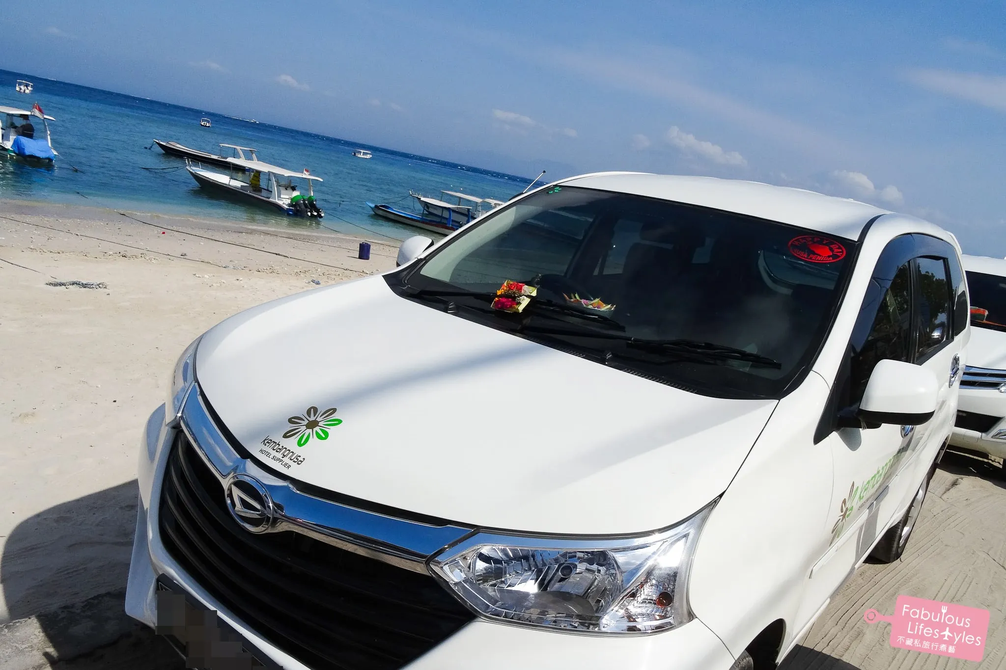 拿完鞋子,司機先生已經在岸邊舉著我們名字的牌子等我們,並帶我們認識一下今天整天要搭的車子。隨後便帶領我們到浮潛業者那邊集合,並說明等我們浮潛完畢他會在門口等我們。整個就是讓人非常安心,出發前那種擔心找不到人、或被丟包的心情一掃而空!
