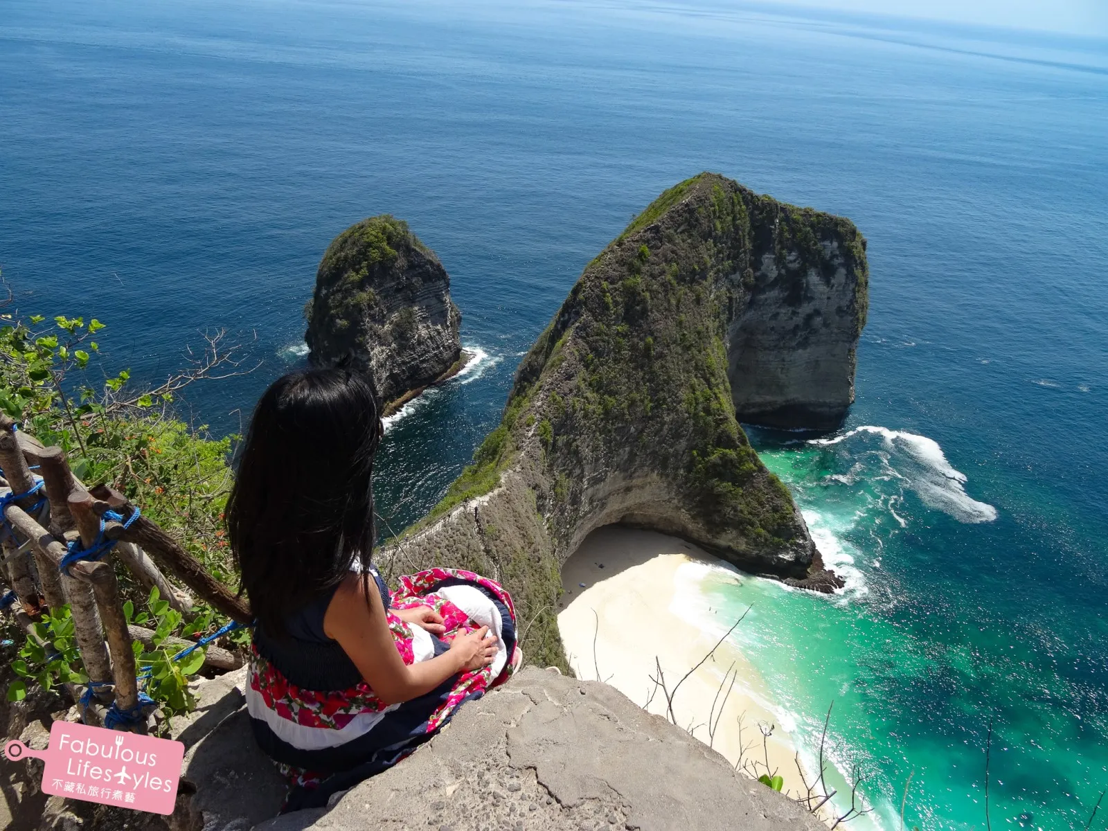 不愧是行程中最熱門 IG 打卡景點,Kelingking 海灘真的是各國網美盡出 😍😍😍,大家都想要跟暴龍美美的合照!!去了這個 Kelingking 海灘之後才突然覺得原來網美也真的不好當!看那個山崖,想要拍到美照,每個女生的腳都是懸空的~下面就是懸崖峭壁,根本只要一不小心沒坐穩就會直接掉落山谷 😱😱😱 超危險!先給大家來一張金髮美女的背影照!!超美的衣服和 Pose~