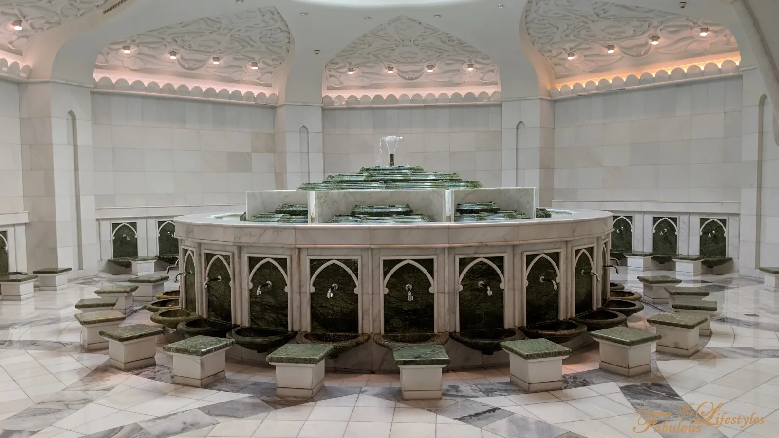 We seriously highly recommend checking out the restroom just to experience the sheer luxury! There are multiple "No Photography" signs standing inside the women's restroom. I'm guessing it's because tourists love taking photos too much! Plus, many local women take off their veils to touch up their makeup inside, so naturally, they wouldn't want to be photographed. Interestingly, Kevin mentioned there were no such signs in the men's restroom (which is at the end of the left corridor after entering the main gate).