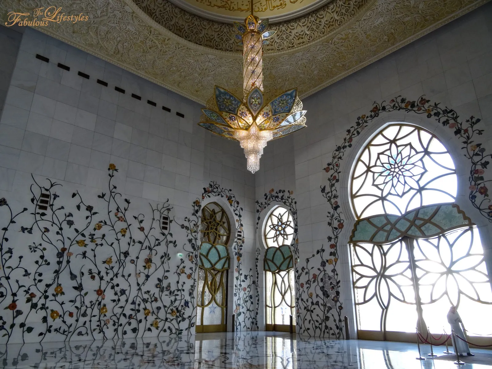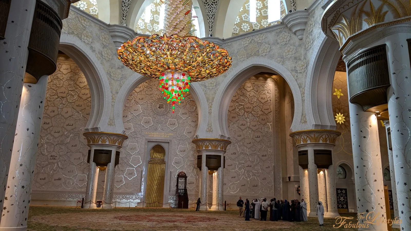 Then we entered the main prayer hall—and there it was, the grand chandelier itself!!! It is seriously spectacular!!!