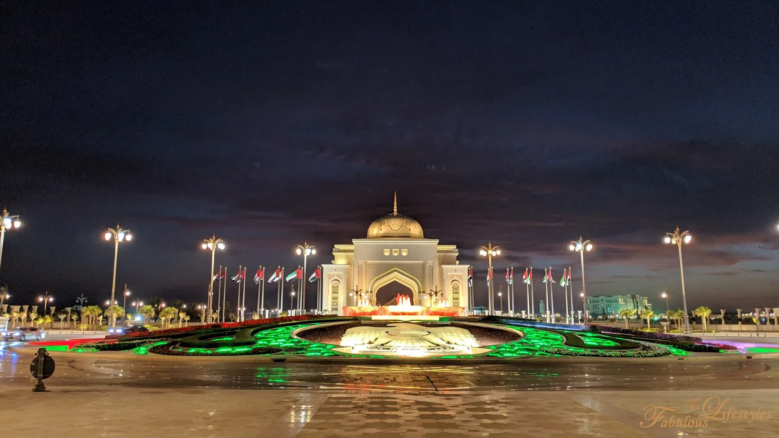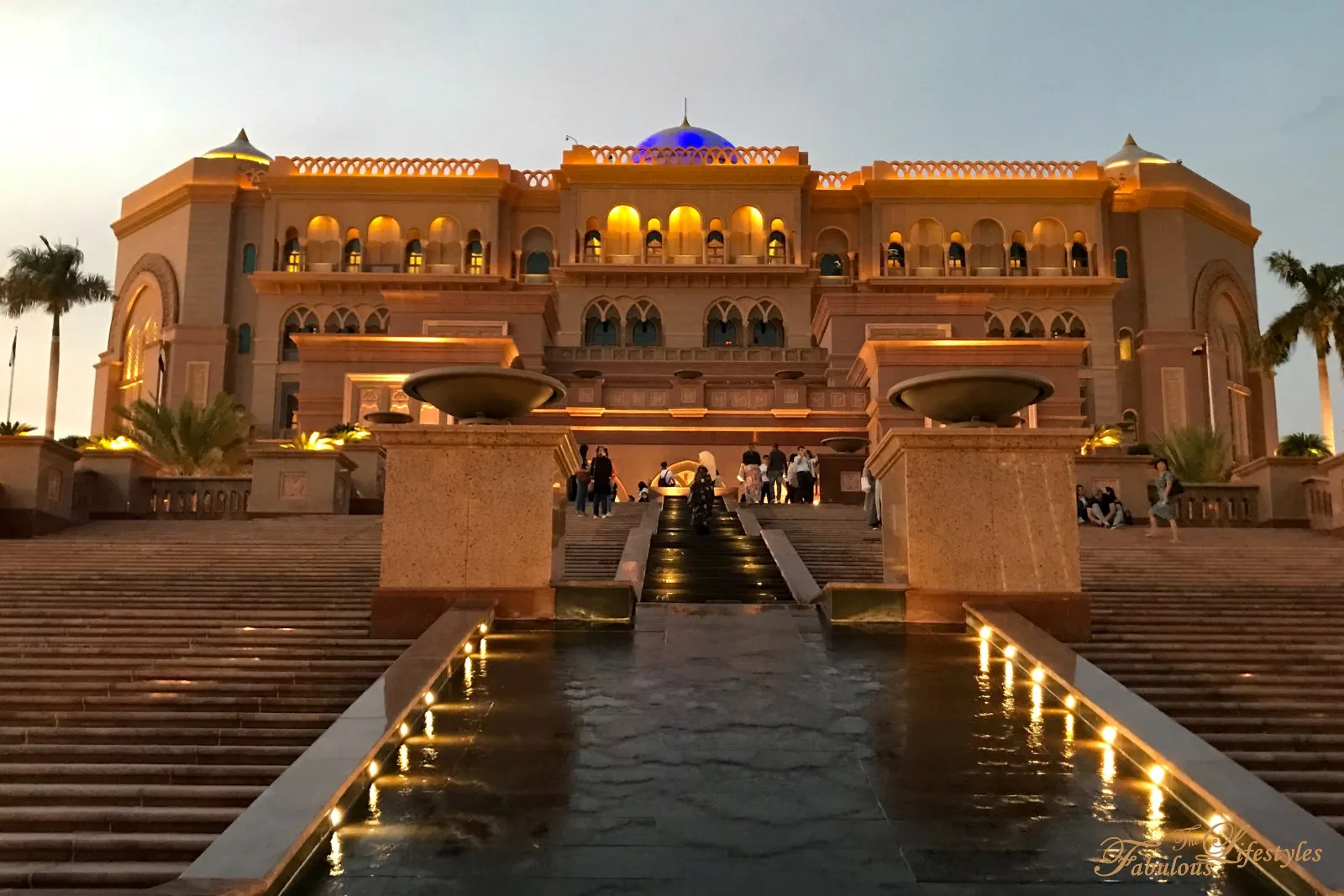 We actually highly recommend stopping outside Emirates Palace right around sunset! Taking photos of the illuminated palace against the colorful, glowing sky is stunning!