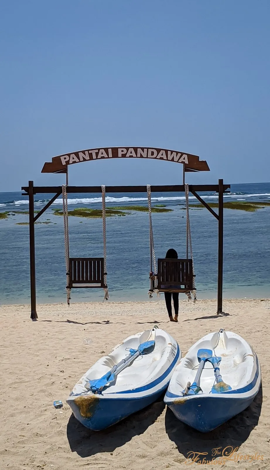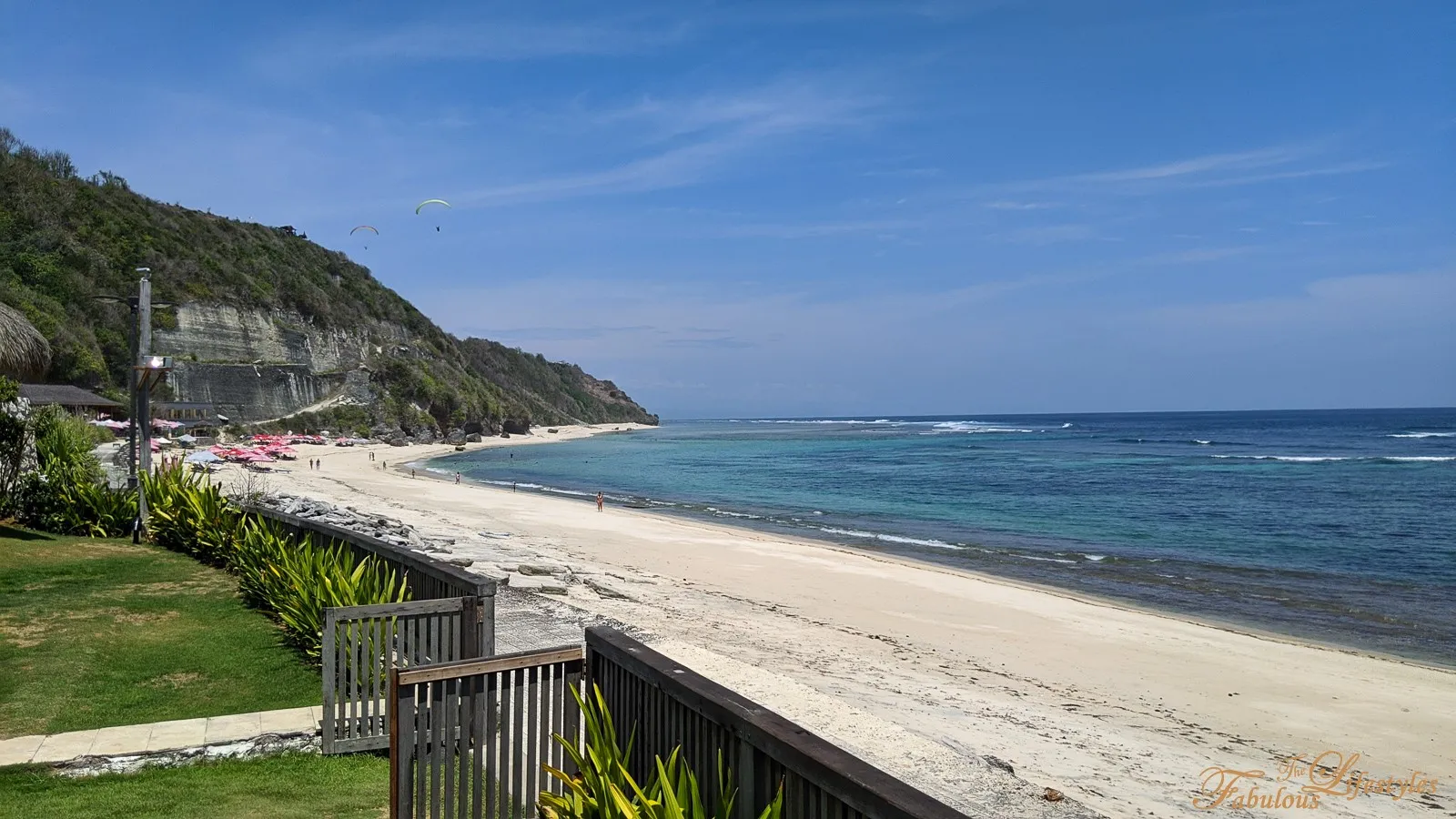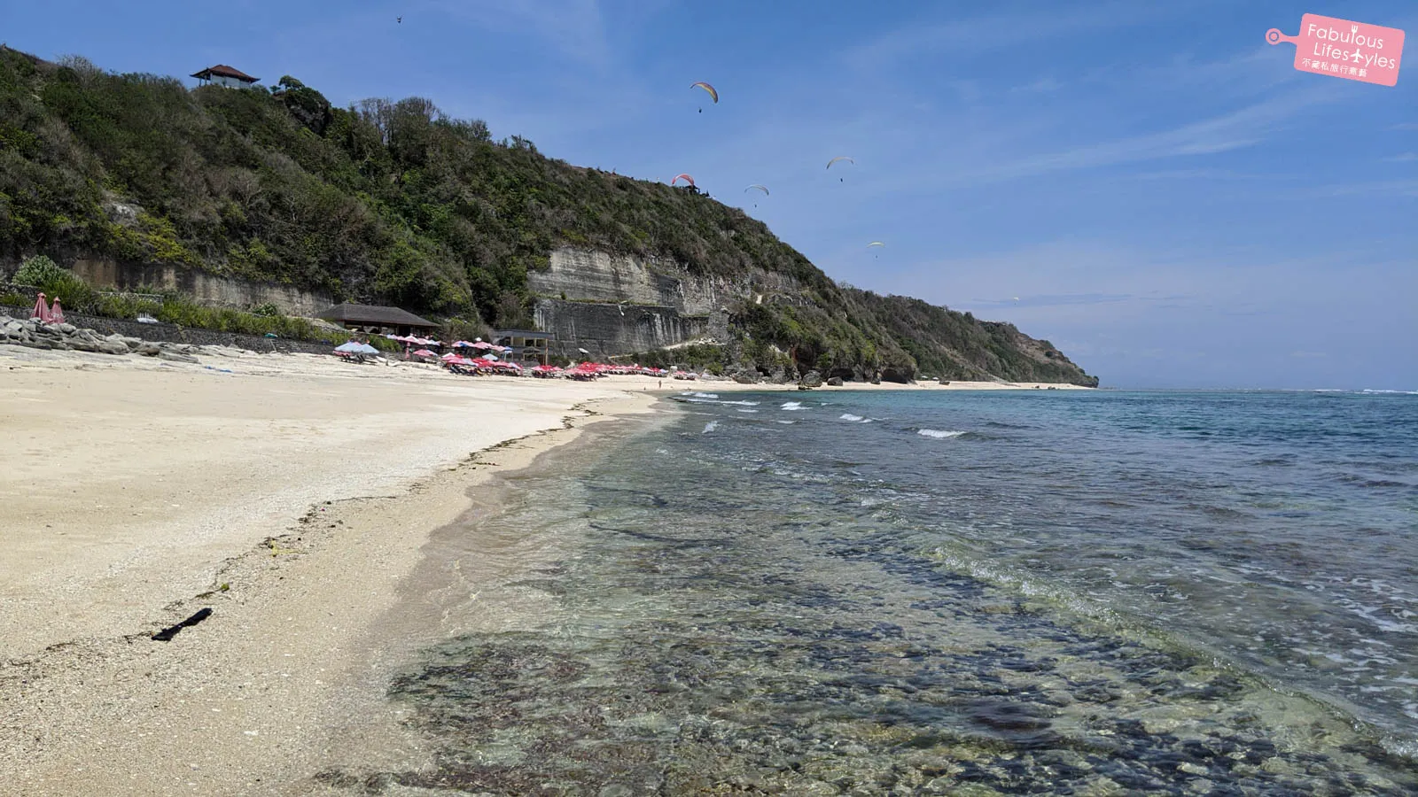All across Pandawa Beach, you can spot colorful paragliders drifting through the sky. Against the backdrop of the blue sky, fluffy clouds, towering cliffs, and sandy shores, it looks absolutely picturesque! The hill right next to the beach is Timbis Hill, a popular paragliding base just a few kilometers away. If you're feeling adventurous, you should definitely give it a try—getting a bird's-eye view of the ocean and cliffs from up there has to be a spectacularly unique experience!