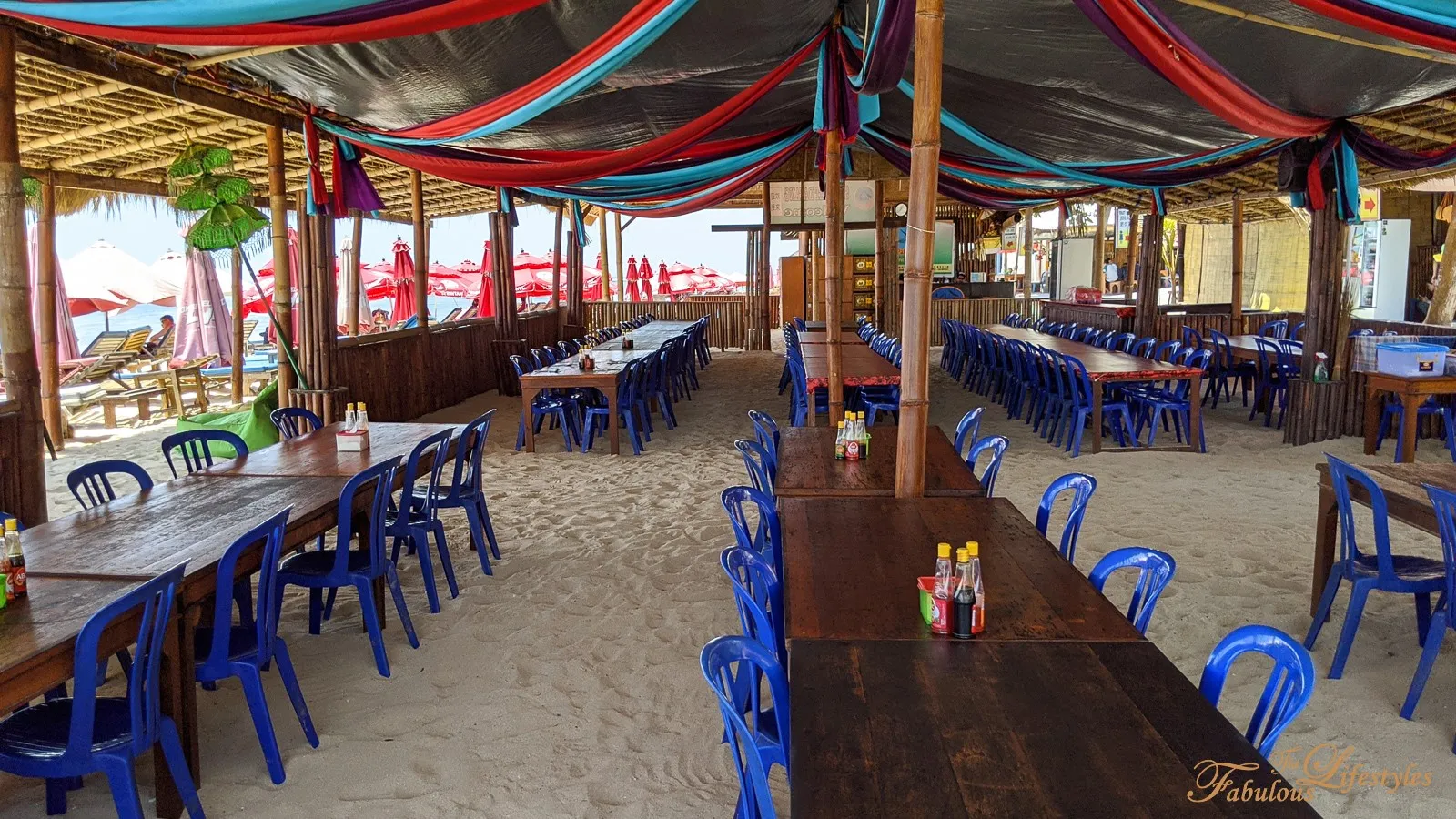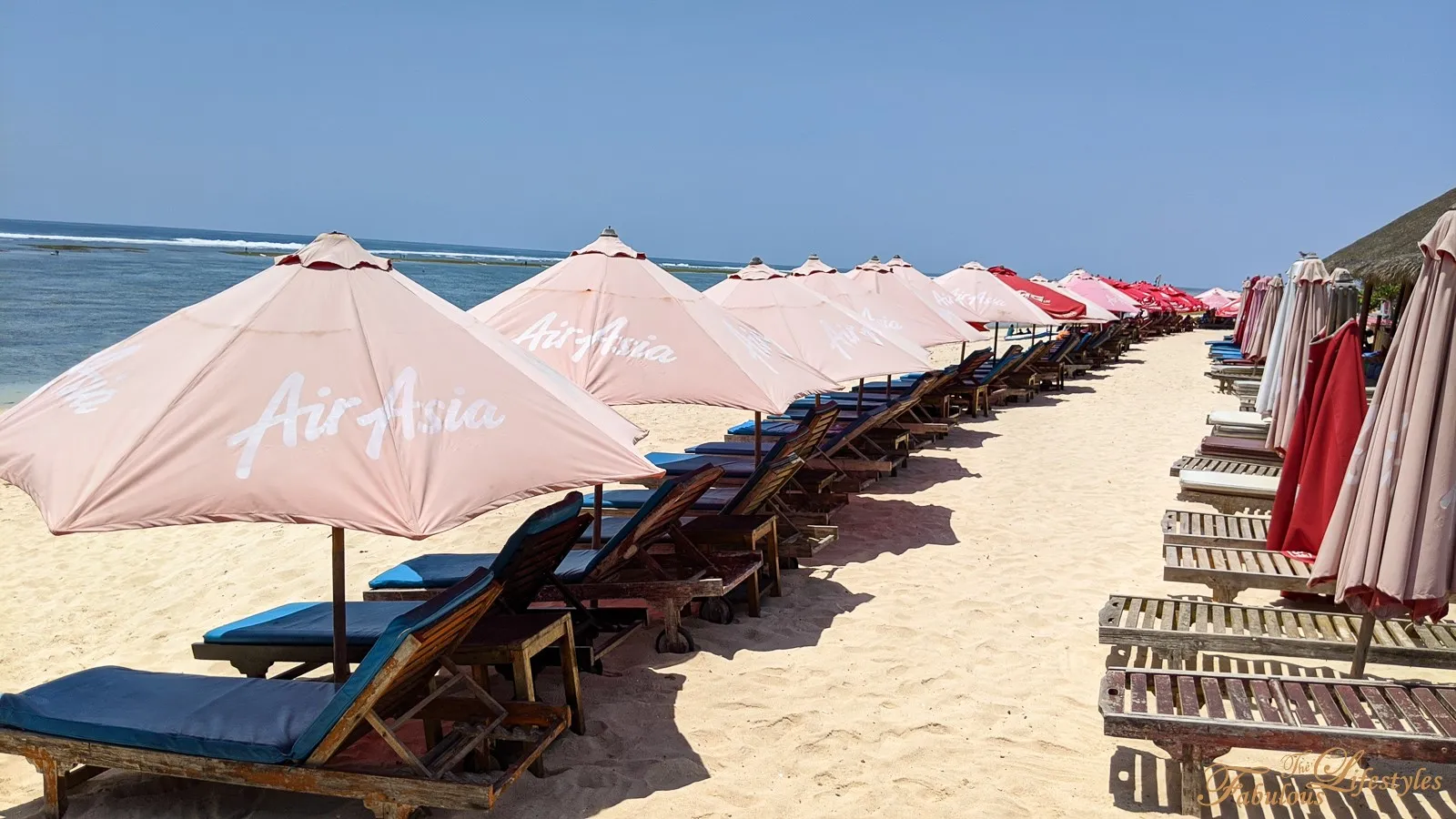 Right outside the restaurant, there's a whole row of sun loungers and umbrellas. We heard you can rent them for a fee~