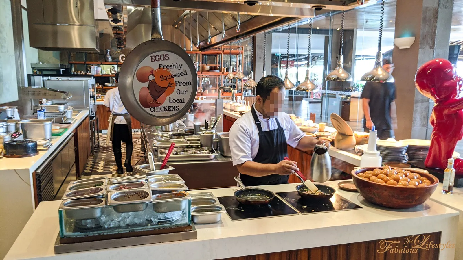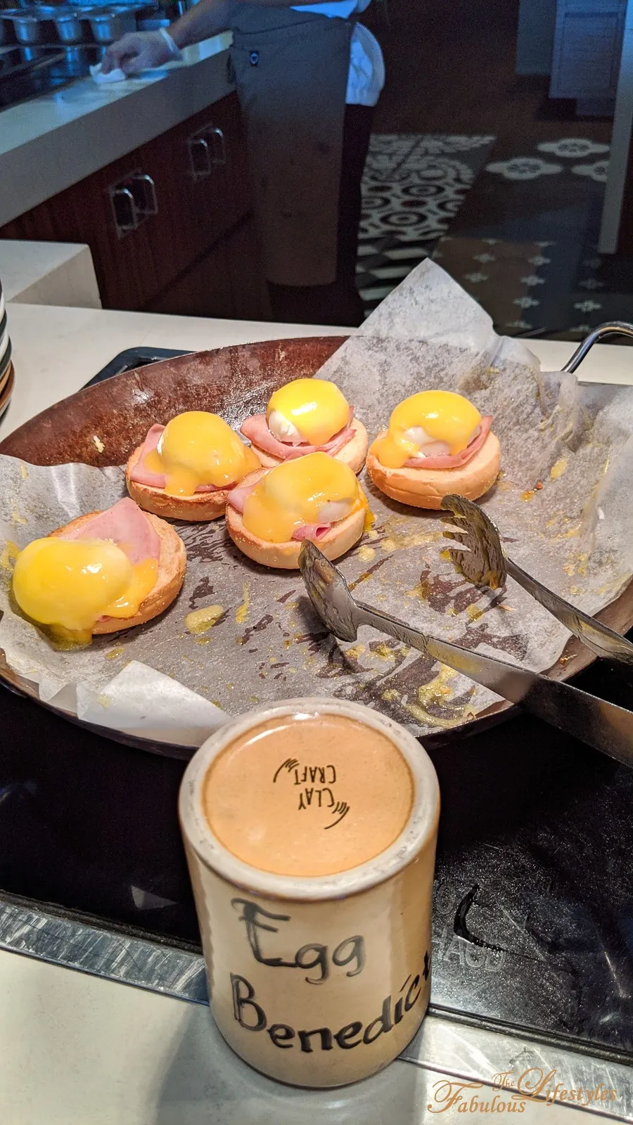 For the made-to-order stations, they have the essential hotel breakfast egg counter~