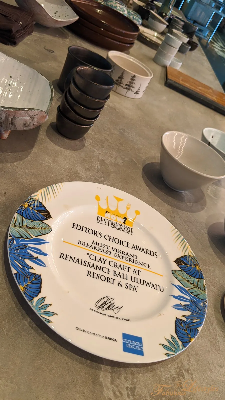 The breakfast at the Renaissance Bali Uluwatu Resort & Spa is truly outstanding. Walking around the buffet is dazzling—there are so many options we didn't even know where to begin, and everything tasted quite delicious! Later, we noticed an award "plate" displayed in the restaurant's pottery studio. It turns out this resort's breakfast won an Editor's Choice Award in 2019!