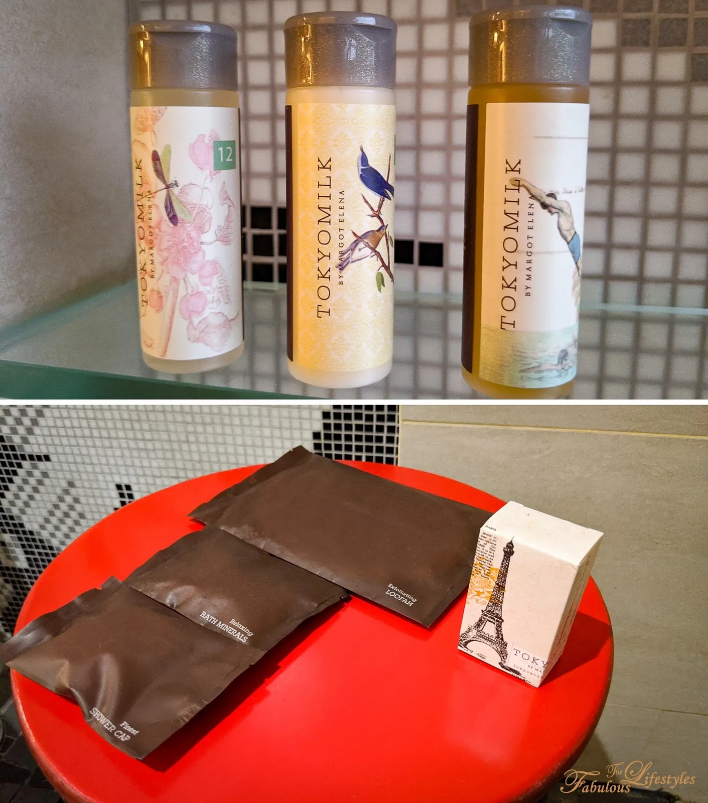 The bath amenities are from TokyoMilk, a brand full of mystery and luxury created by American designer Margot Elena.