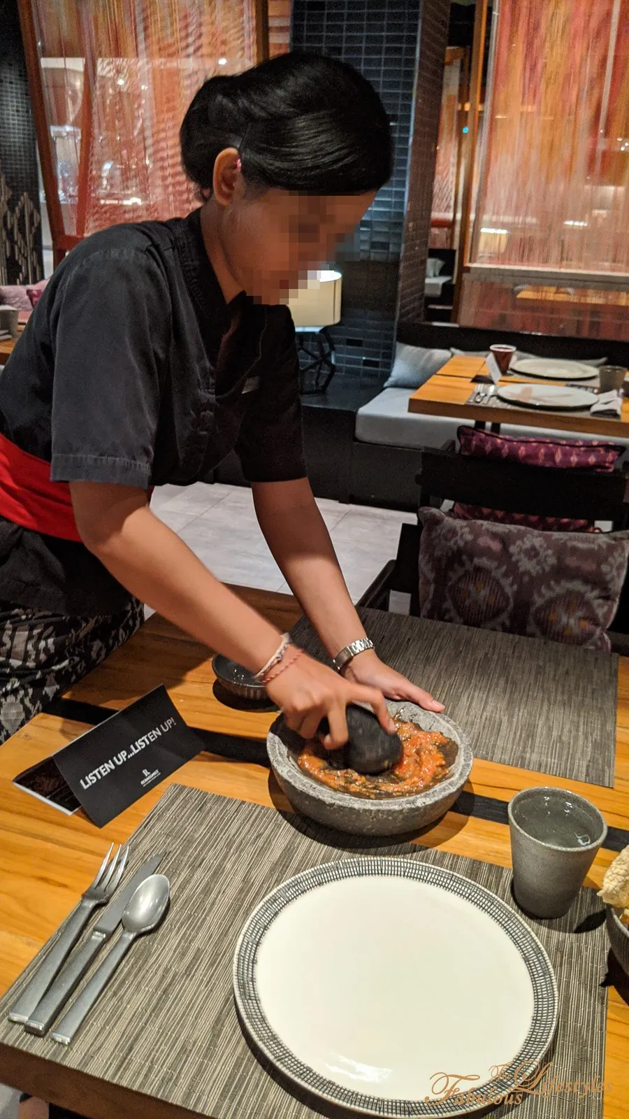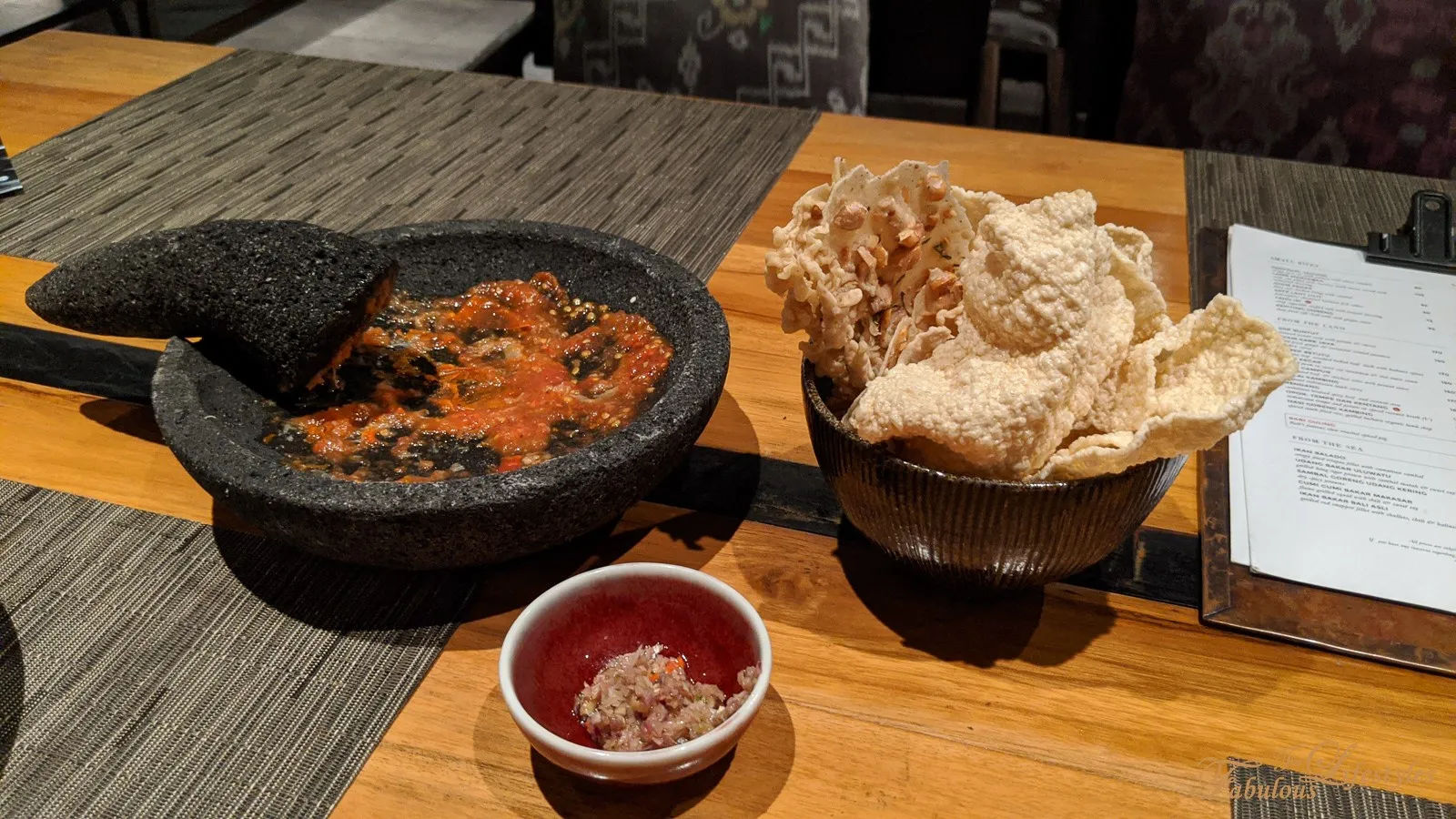 Every time we ordered, a staff member would come to our table to grind fresh Indonesian dipping sauces right in front of us. This was served with unlimited Indonesian crackers for dipping. One time, after we polished them off, they automatically brought over another huge bowl for us!