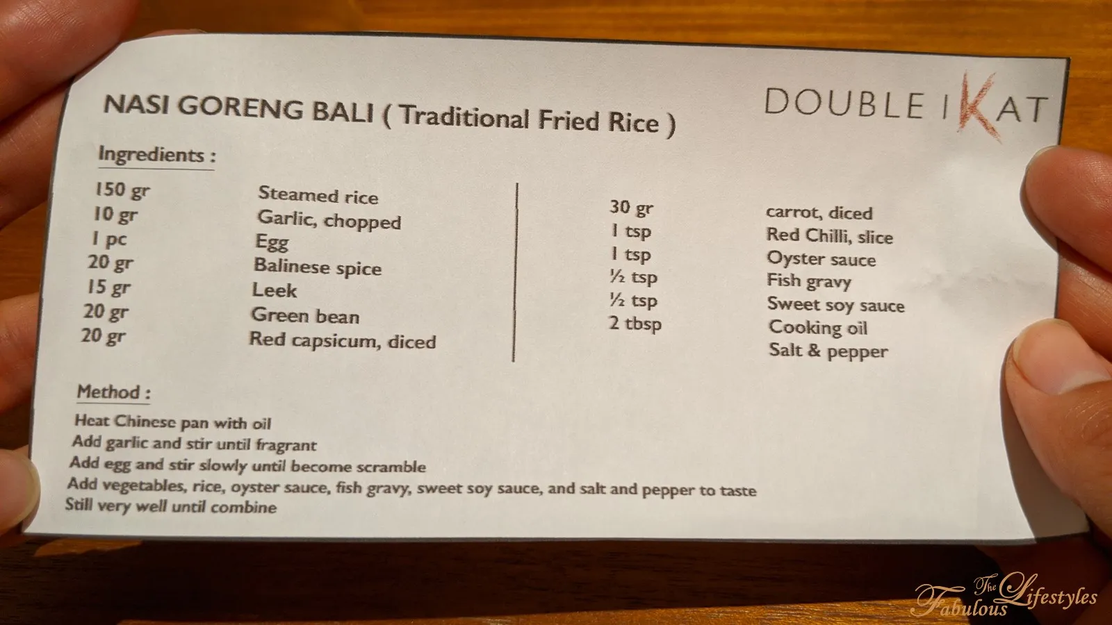 Because Cherry loves to cook, she casually asked how they made their Nasi Goreng (Indonesian fried rice). To our surprise, the head chef personally brought an adorable recipe-in-a-bottle right to our table!