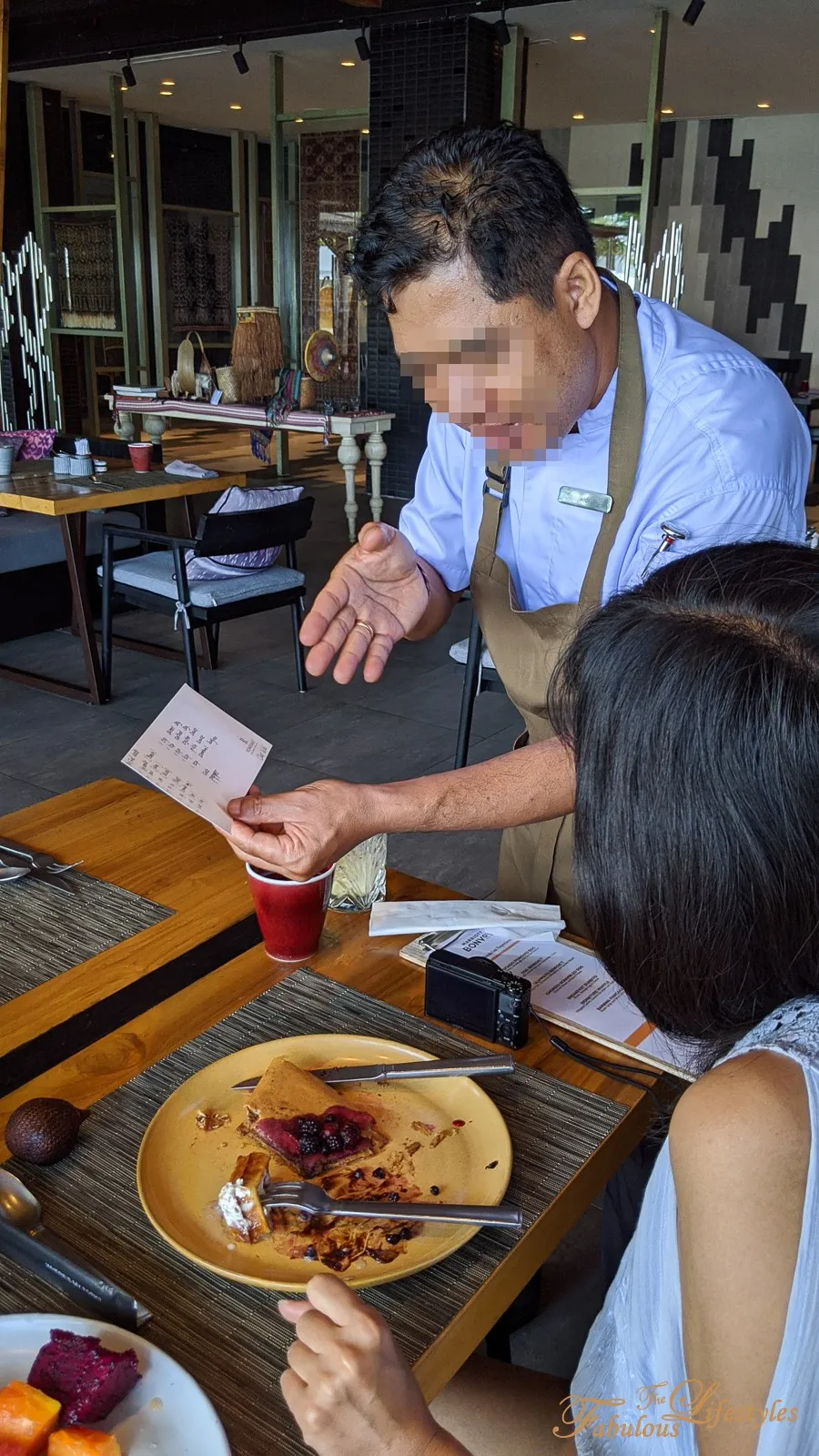 We happened to have Platinum status, giving us a 20% discount. After the discount, a dinner for the two of us came to around $35-40 USD, including tax and tip. Thinking back to our astronomically expensive meals in Bora Bora, Tahiti just a few months prior… what we spent on one meal there could easily cover three meals here, with change to spare! We instantly felt that for a five-star hotel restaurant, the discounted price here was incredibly reasonable! 😆 This Indonesian restaurant basically became our personal kitchen. Out of the 5 nights we stayed, we ate dinner here 4 times. By the end, the servers and chefs had all become our good friends!