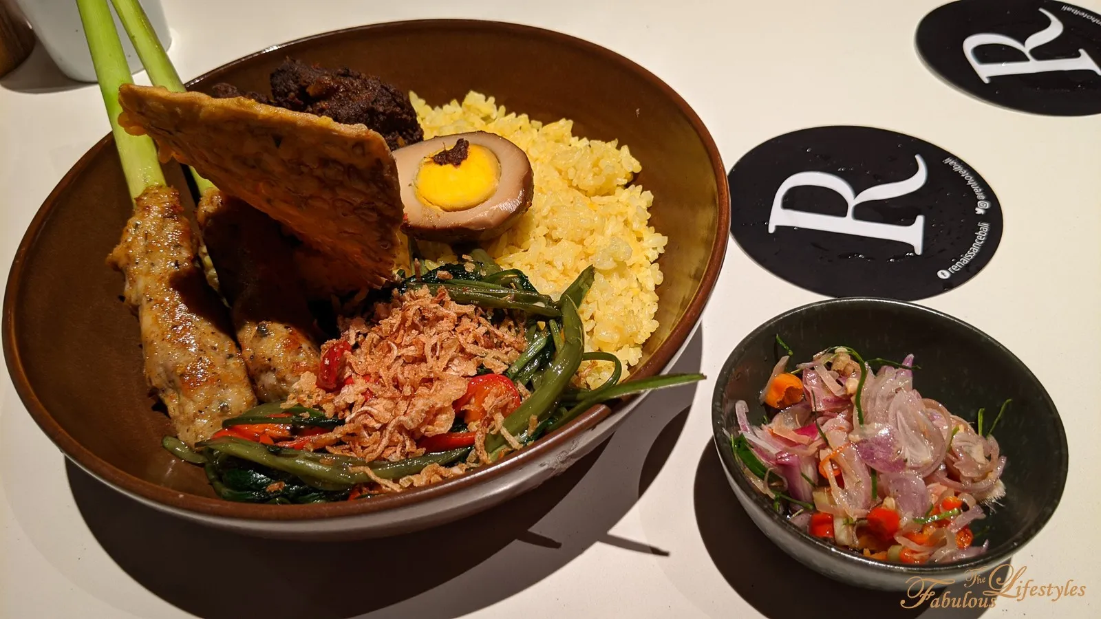 The food itself is traditional Indonesian cuisine, though the plating leans towards a more elegant, Western-style presentation.