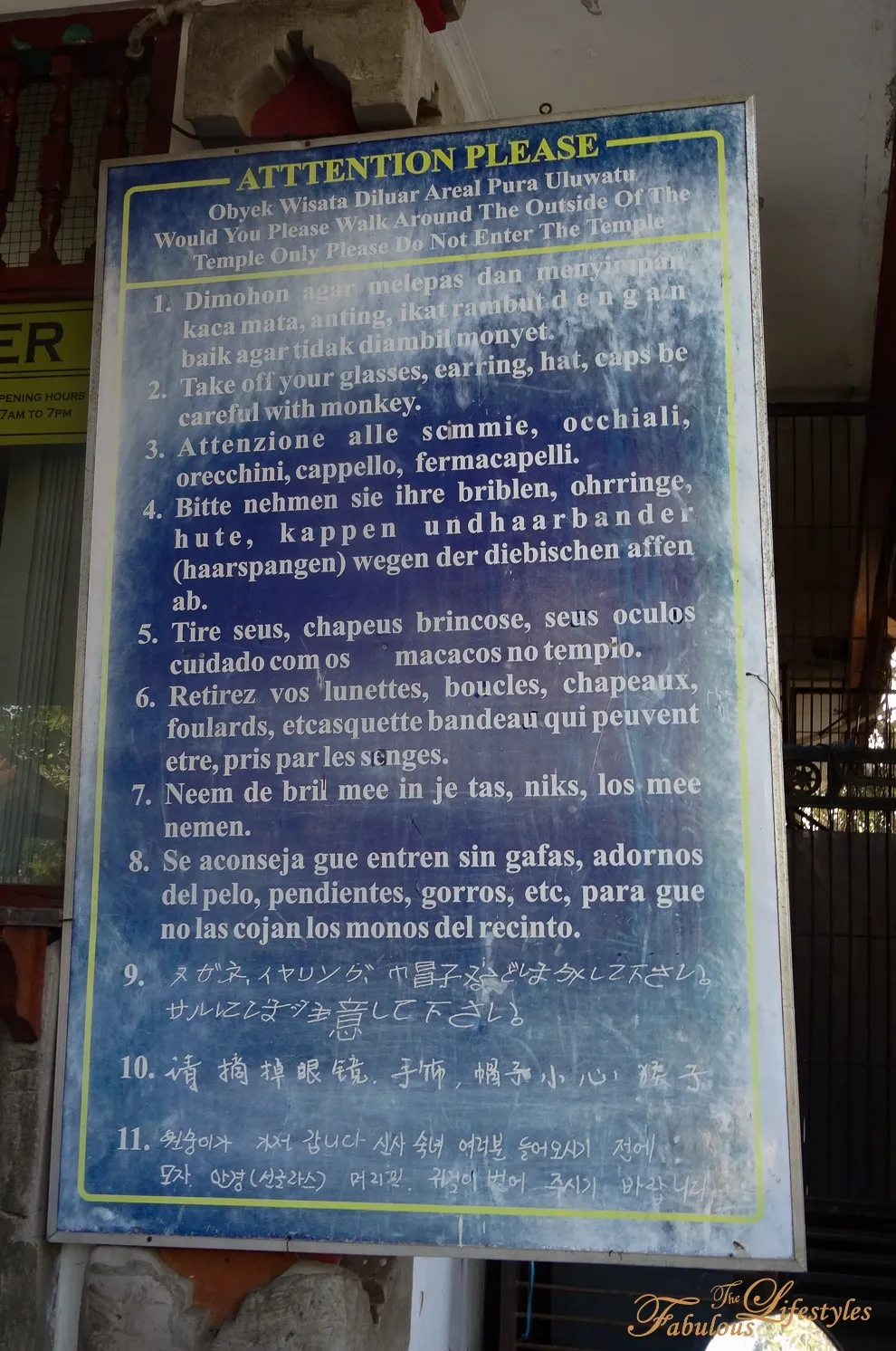 It’s particularly worth noting that right next to the ticket counter, there’s a massive warning sign written in 11 different languages: "Please remove glasses, jewelry, hats. Beware of monkeys." Clearly, a lot of unsuspecting tourists have been ambushed here! Before our trip, Cherry had already read about some of the tragic experiences from other travelers online, so we came fully prepared. Make sure you stay vigilant when you visit!