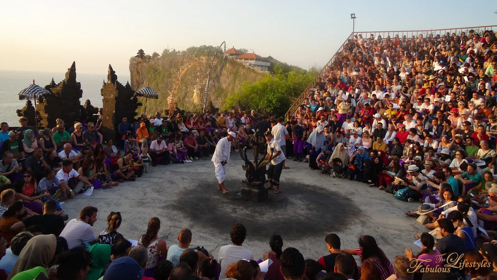 The famous traditional Indonesian Kecak Fire Dance is held in a spectacular circular amphitheater perched right on the cliff edge.