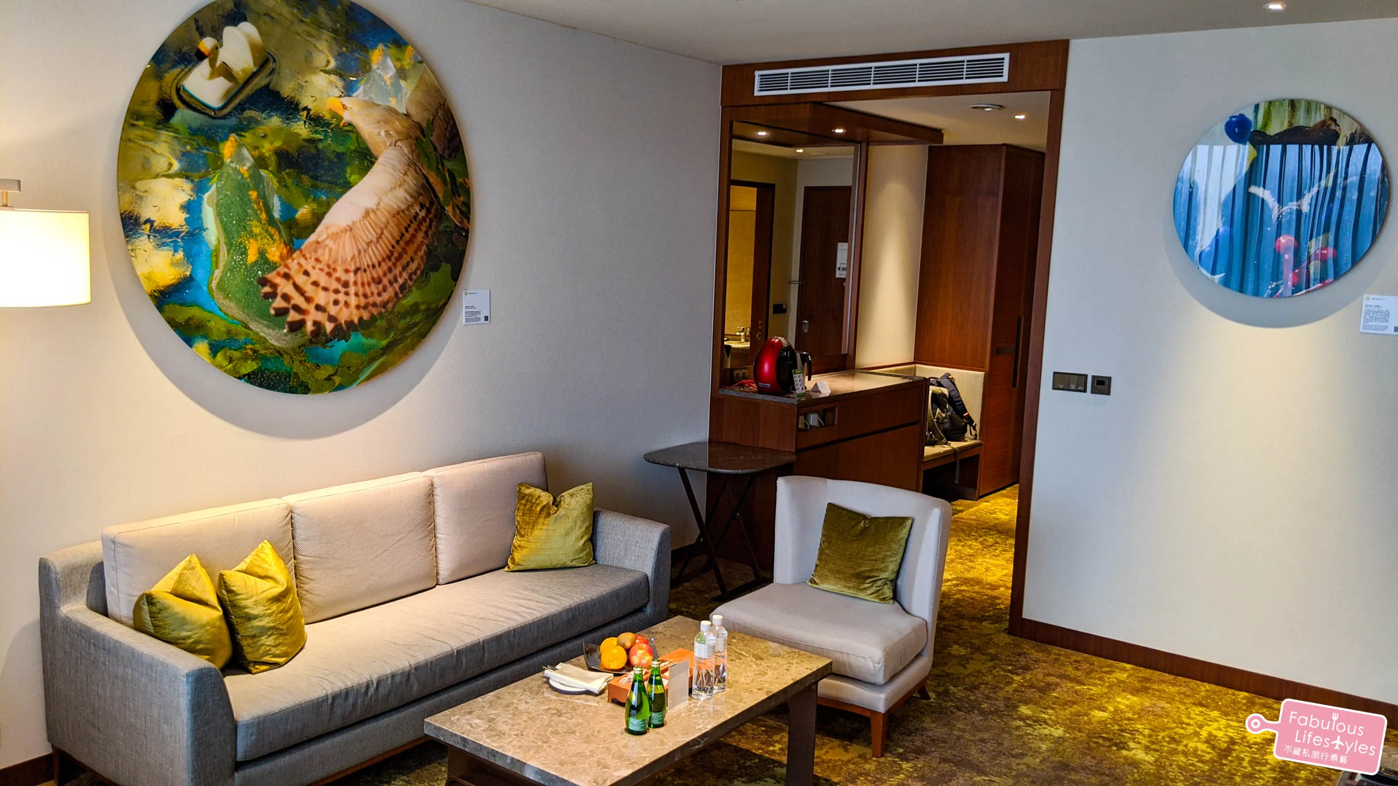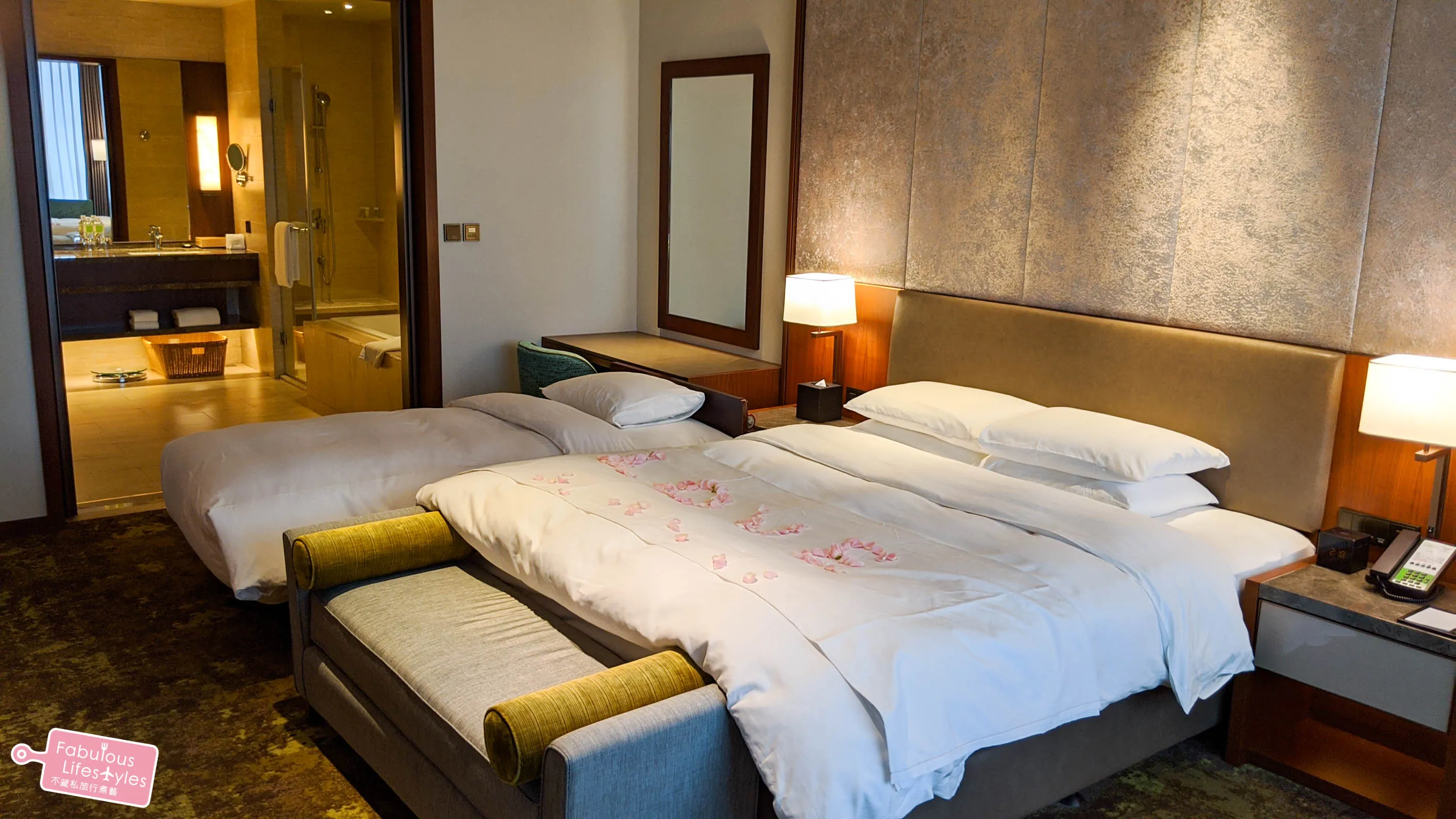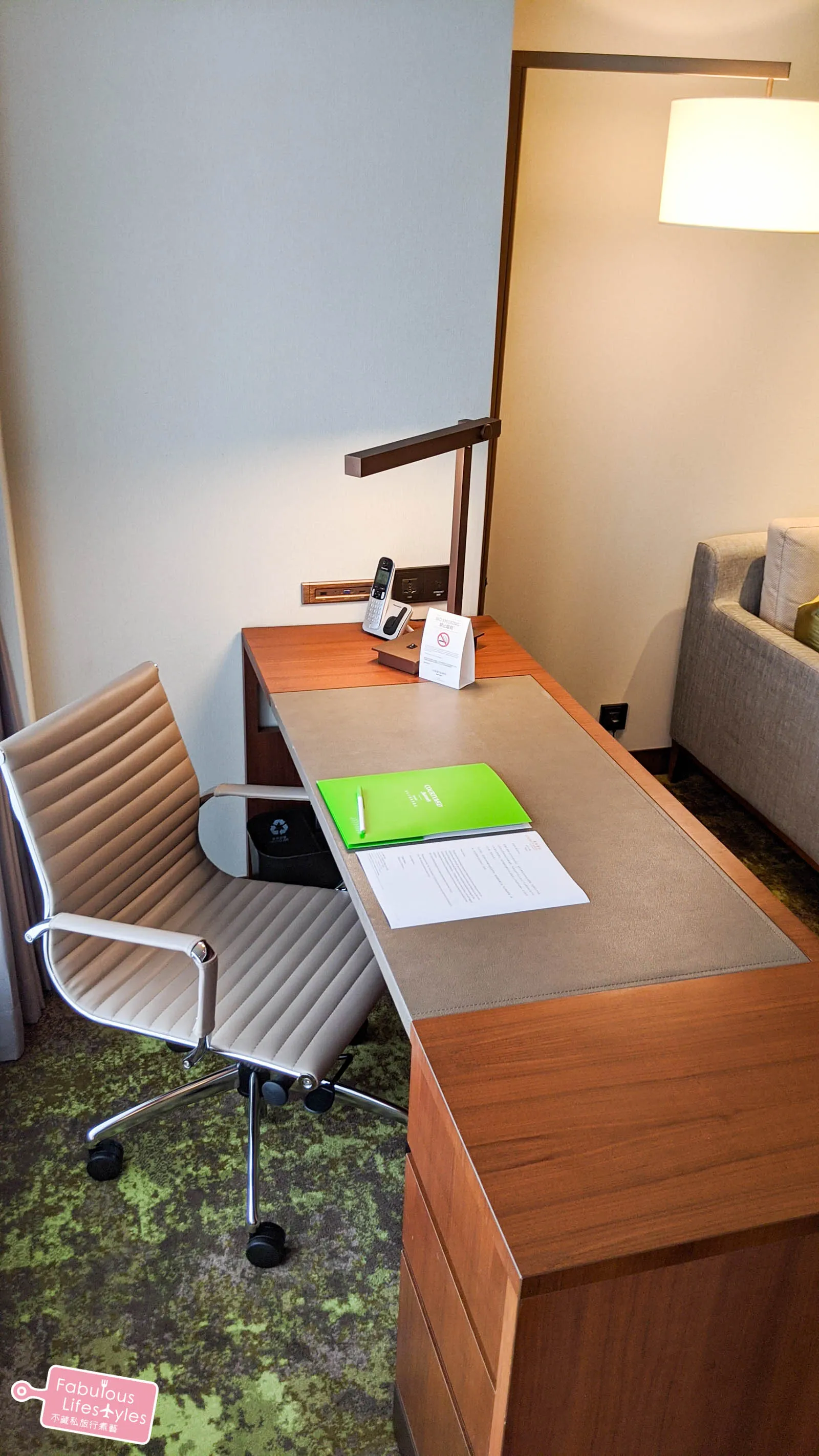Compared to our overall hotel experiences in Taipei, the space in this Deluxe Suite is incredibly generous. Not only does it have an independent living room area, but it also features a dedicated workspace with massive floor-to-ceiling windows offering fantastic natural light.