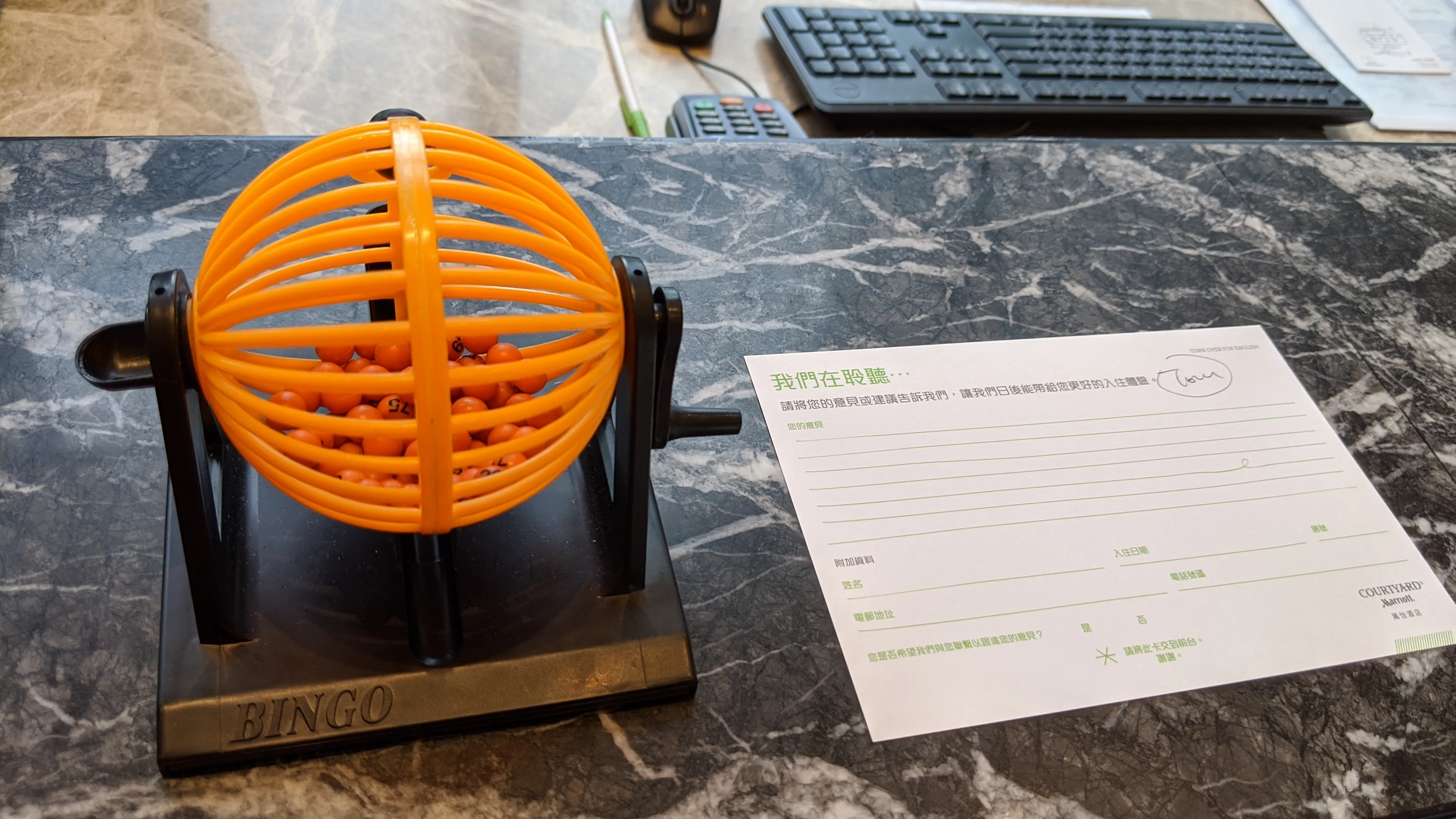 We originally checked into the Courtyard Taipei to visit relatives, so our dining schedule was completely packed. We hadn't planned any time to eat at the hotel's restaurants (except for breakfast). But as fate would have it, while we were checking in, the hotel was running a lucky draw event. I have to say, Cherry's luck was through the roof! With one spin, we won 👉🏻 a Lobby Lounge Afternoon Tea set worth $999 + 10% service charge!