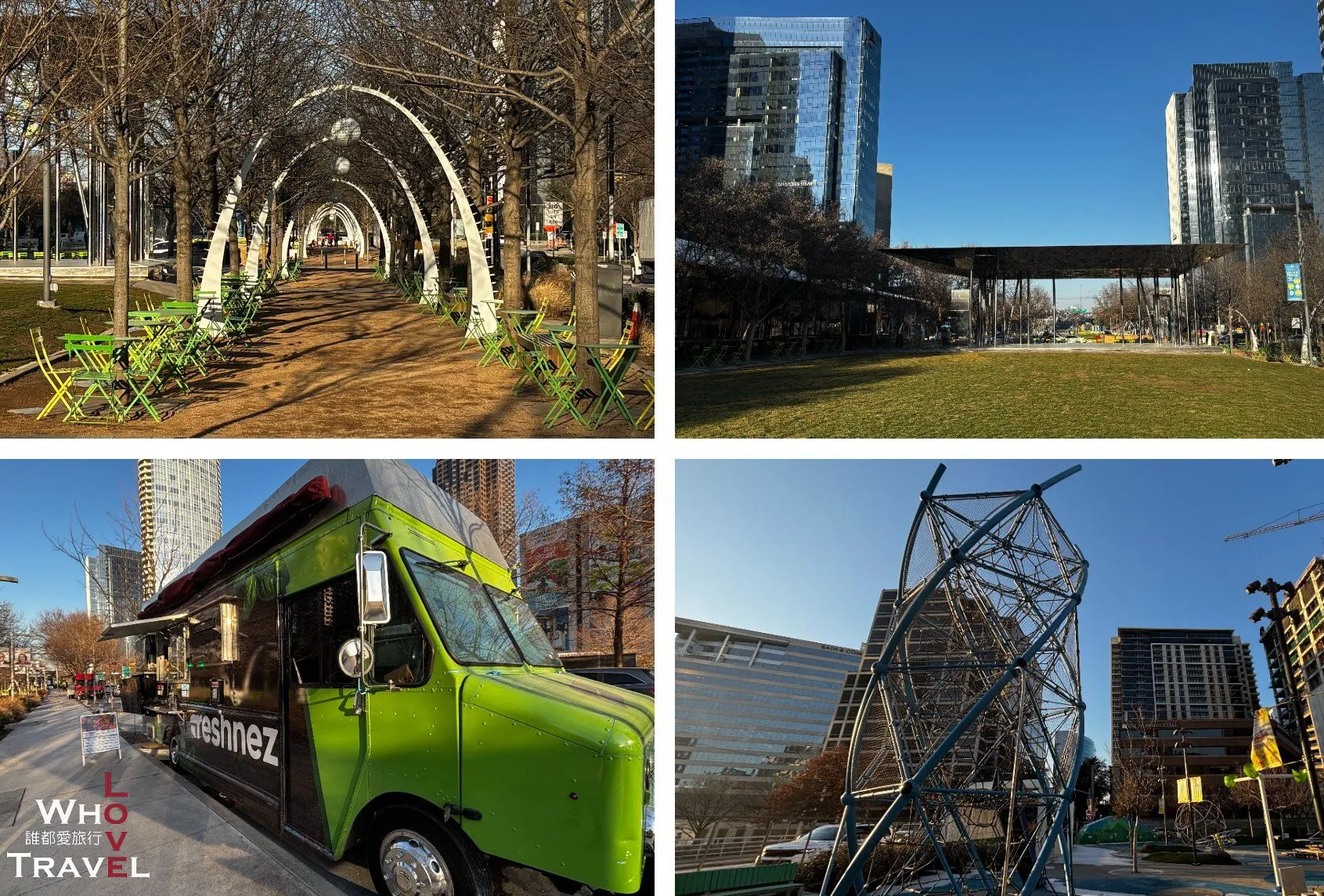 Klyde Warren Park is no ordinary park—it’s a suspended green oasis built right over a sunken freeway, successfully stitching the previously separated Downtown and Uptown back together. The park features sprawling lawns, a 35-foot-tall climbing tower, slides, splash pads, and a variety of children's play equipment. It feels very safe, making it a godsend for parents looking to let their kids burn off some energy! Moreover, the perimeter of the park is a premier hub for amazing food trucks. Grabbing a bite and having a picnic right on the lush lawn with a spectacular skyline of skyscrapers as your backdrop is a truly fantastic 'urban jungle' dining experience. The best part is its unbeatable location. It's right across from the Dallas Museum of Art, and the Perot Museum is less than a 10-minute walk away (it's downhill from the park, too!). Plus, the M-Line Trolley mentioned earlier has a stop right at the entrance. The convenience gets a perfect 100! We highly recommend using the park as a rest stop between attractions to grab food, relax, and casually check the vintage trolley and this incredible over-highway park off your list!