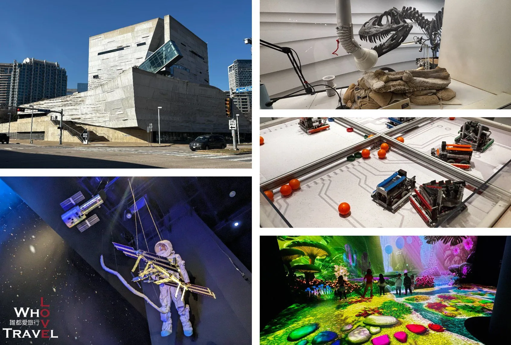 The Perot Museum of Nature and Science is widely regarded as one of the top science museums in the US. The building's exterior is striking, designed by Pritzker Architecture Prize laureate Thom Mayne, featuring a massive glass escalator that seemingly floats on the outside of the building. Inside, the museum boasts the world's only model of a Nanuqsaurus (a type of tyrannosaur that lived in the Arctic). There are tons of interactive exhibits, including a pipe wall where you can blow scarves out of different exits, an animation game in the bird section where you mimic flight postures, and a sports hall where you can literally race against a T-Rex or pro athletes! Kids of all ages will have an absolute blast here. If you have toddlers, the basement has a dedicated children's museum section that's practically a premium indoor playground. If you're bringing kids, you could easily spend an entire day exploring this museum!
