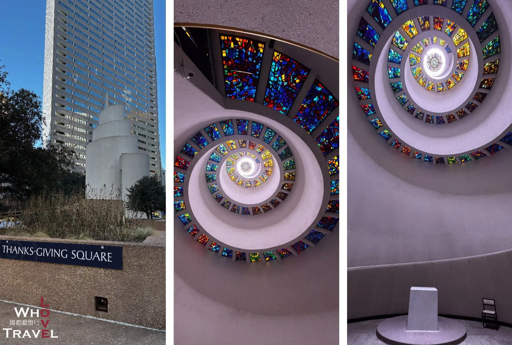 Thanks-Giving Square is a hidden oasis right in the heart of downtown. Not only can you enjoy a moment of tranquility in this lush sunken garden, but the eye-catching white spiral chapel and its spectacular "Glory Window" are absolutely worth seeing. The chapel's spiraling ceiling features 73 panels of handcrafted stained glass. When sunlight pours through, the colors stretch upward along the spiral, creating a breathtaking rainbow spectrum. The square is kept impeccably clean and you'll often see office workers eating lunch or reading here, giving it a very safe and relaxed vibe. Since it’s so close to multiple other attractions, it's the perfect pit-stop to rest your feet and catch your breath between destinations.