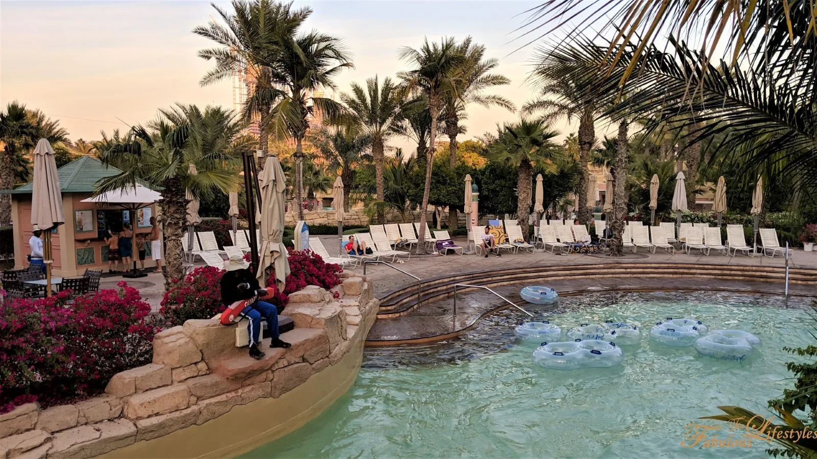 While we were totally lost, we happened to see people leisurely floating down a river in their tubes. No walking required—just lie back and take in the waterpark scenery! We were instantly drawn to it, and after asking around, we found out it's called the Rapids!
