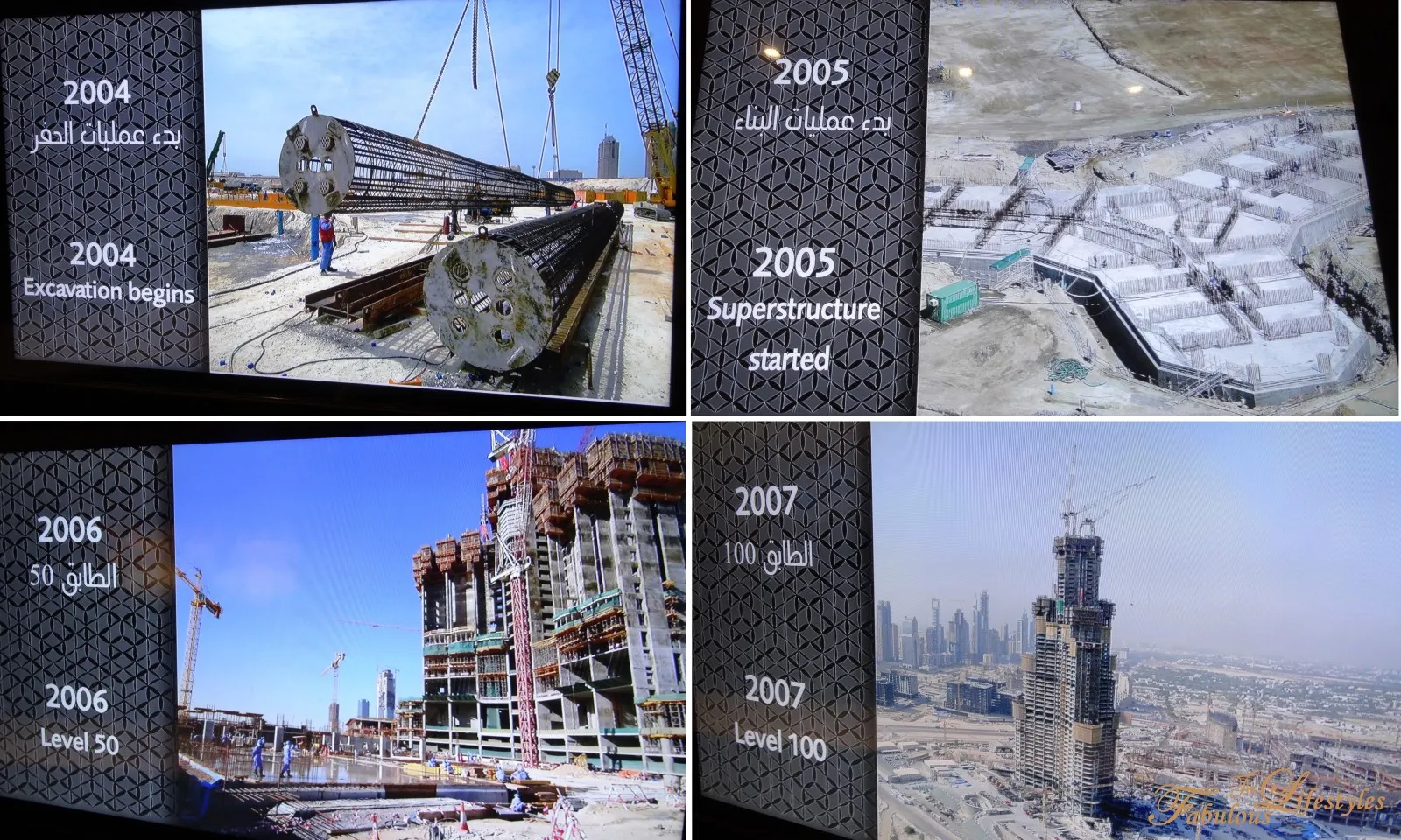 The corridor showcases the entire construction process of the Burj Khalifa from the ground up.