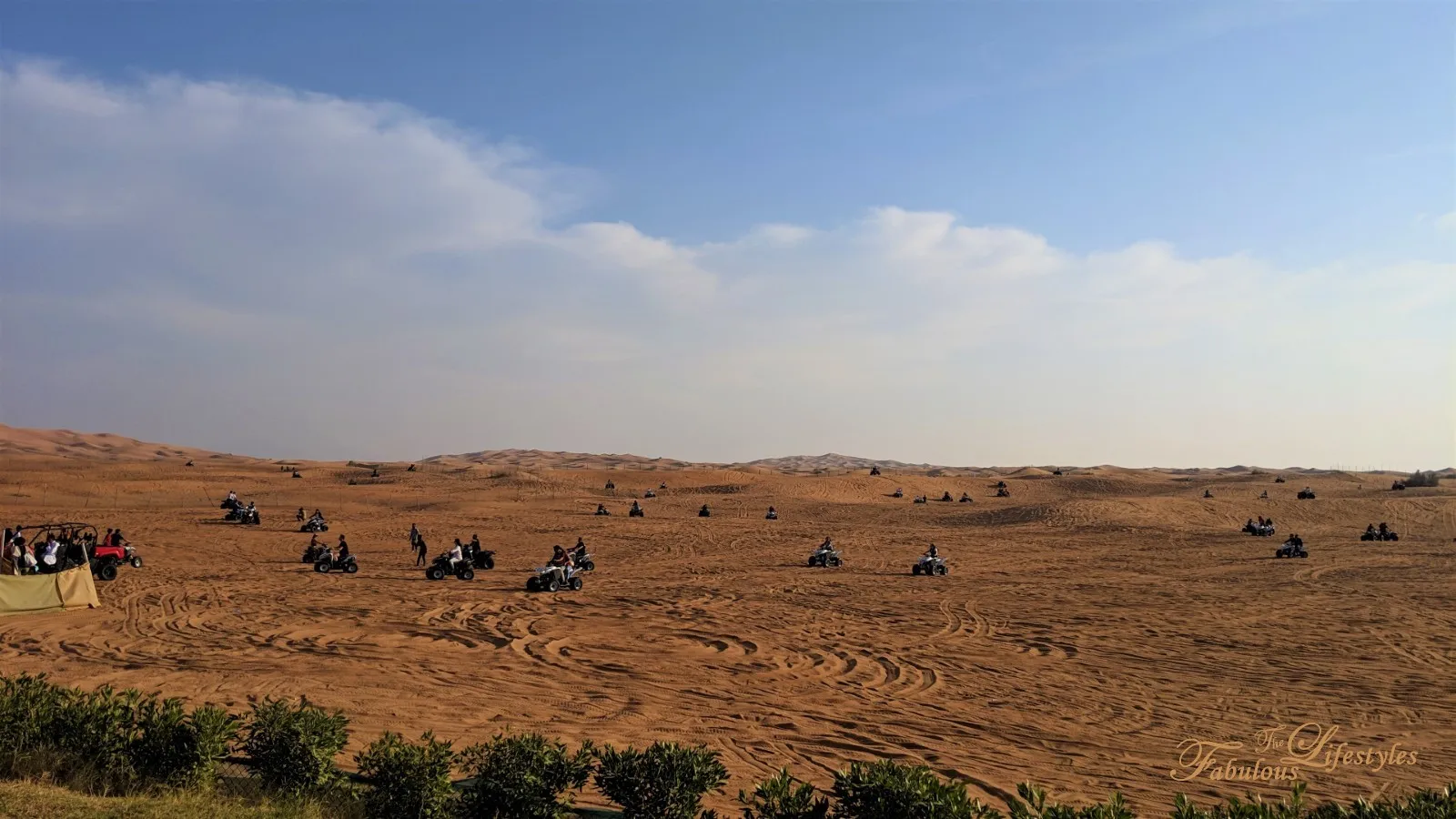 We thought we'd be driven straight into the desert for the dune bashing, but instead, we were dropped off at this random spot ↓ to ride ATVs (AED 150 per person for 1 hour).