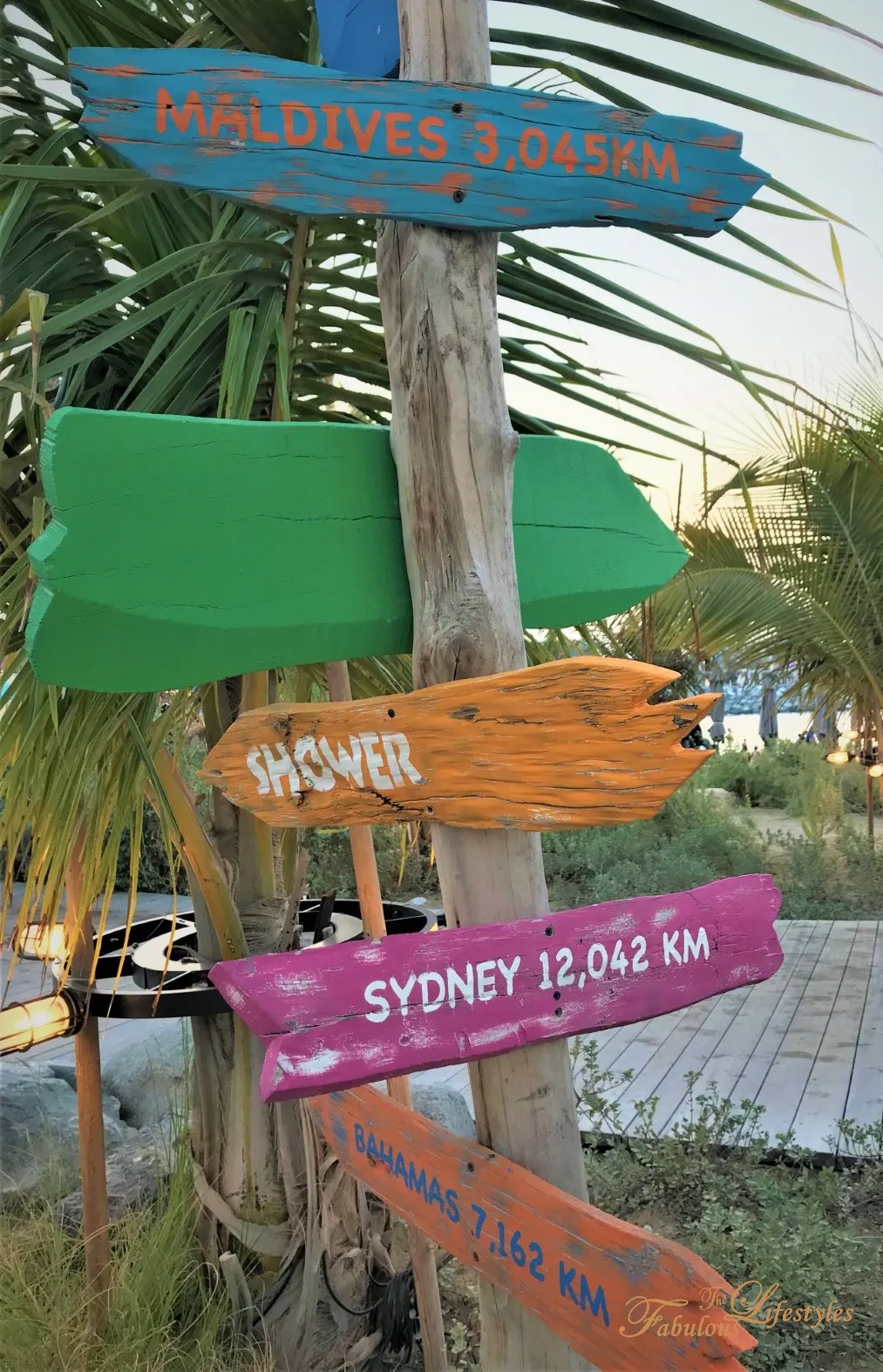 Adding to this laid-back atmosphere, a signpost showing the distances to world-famous vacation spots feels so appropriate~~~ The Maldives, Sydney, the Bahamas—they all made the list! I wonder where you'd like to travel next?