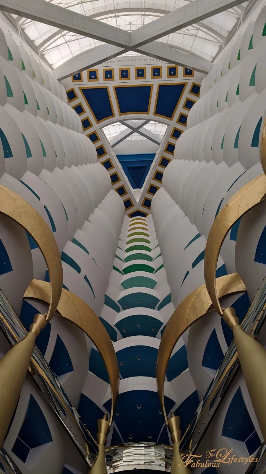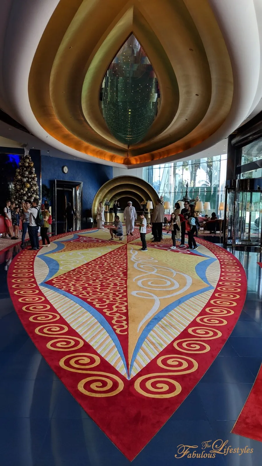 The lobby ceiling and carpets are all styled in the shape of a dhow sail—so unique and breathtaking!