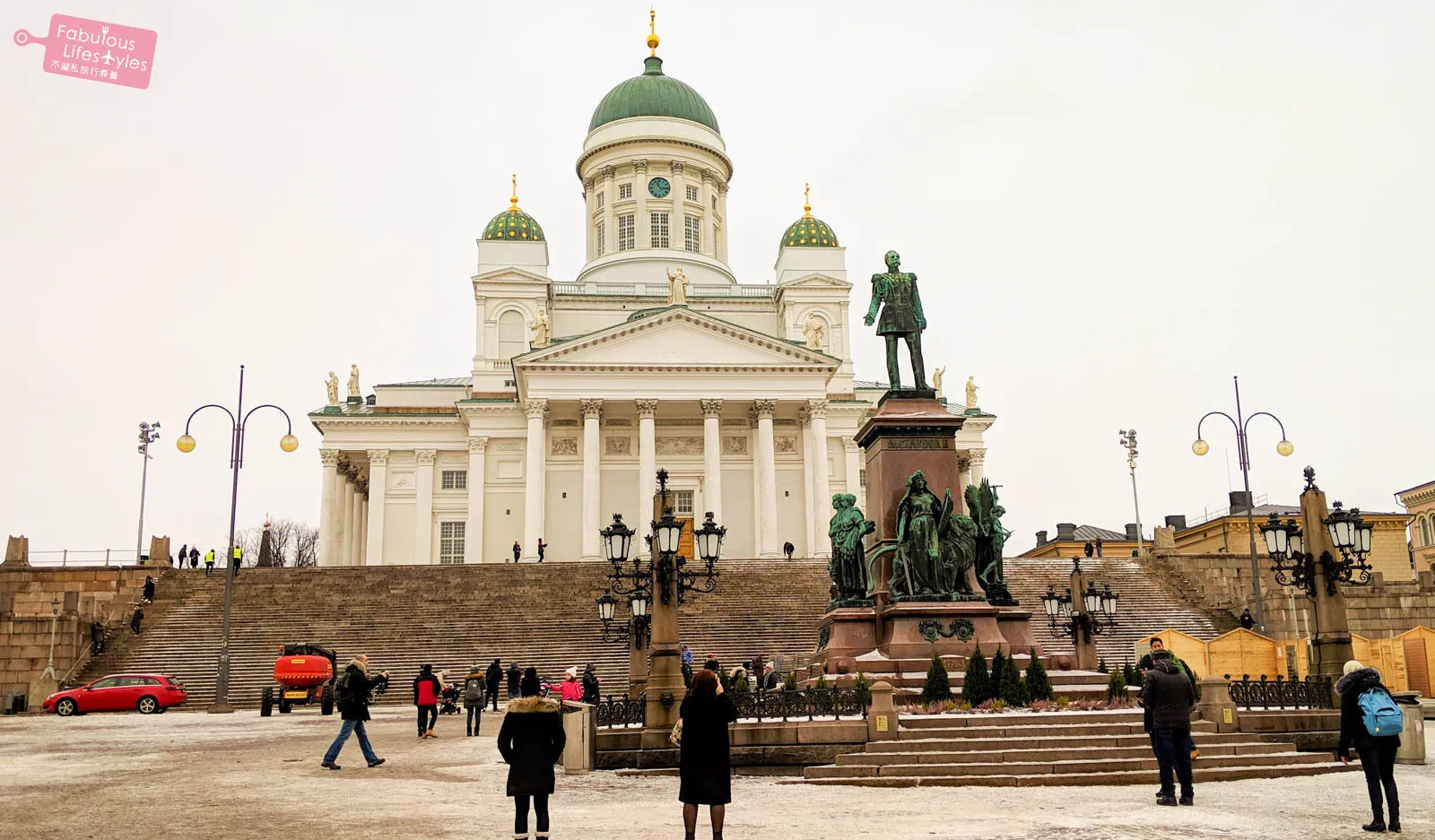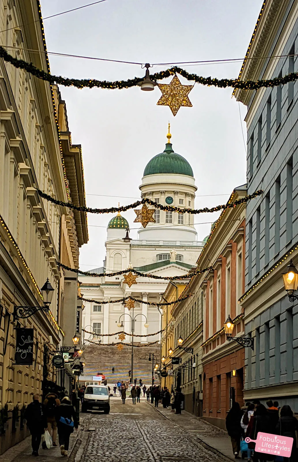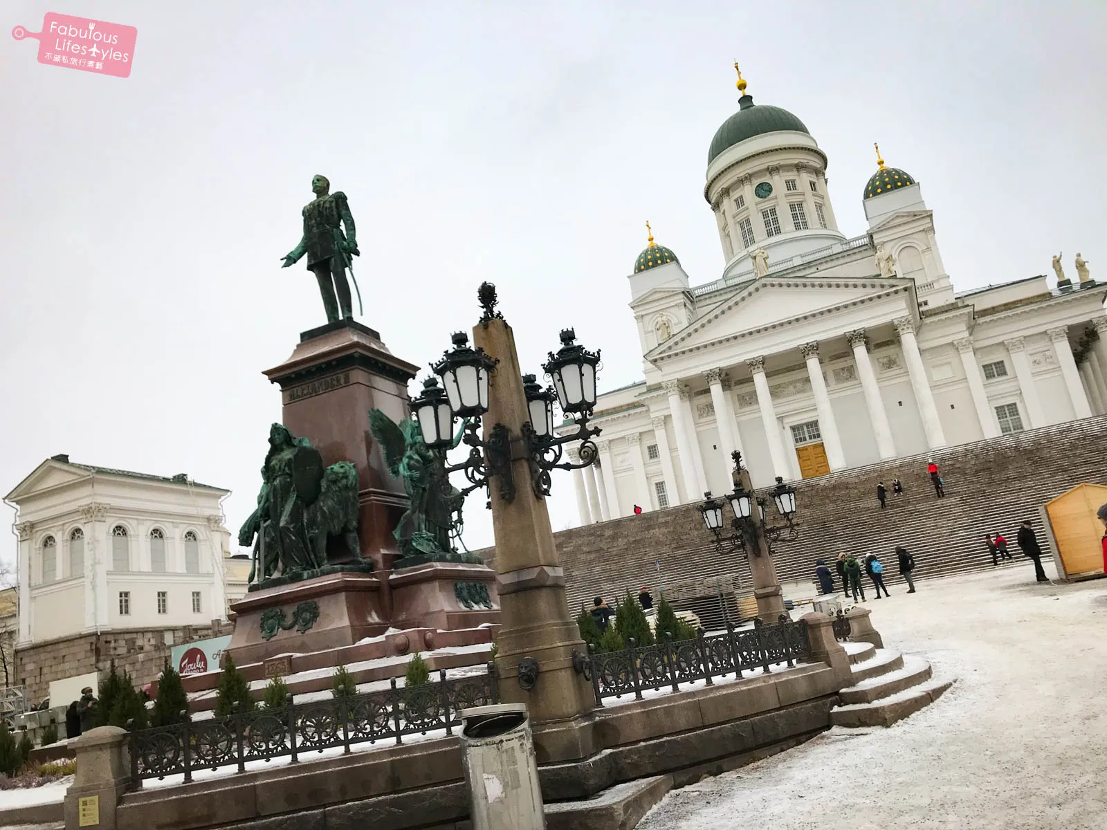 Even though we didn't get to experience the Christmas Market, the holiday had just passed, so the paths leading to Helsinki Cathedral were still decked out in festive decorations. While they might not be as dazzlingly extravagant as the Christmas lights in London, these understated holiday touches were perfect. They didn't steal the spotlight from the cathedral; instead, they added an indescribable touch of elegance. Sure, we didn't have a vibrant blue sky, but adorned with green and gold Christmas lights that perfectly matched the cathedral's domes, Helsinki Cathedral radiated its own unique winter beauty!