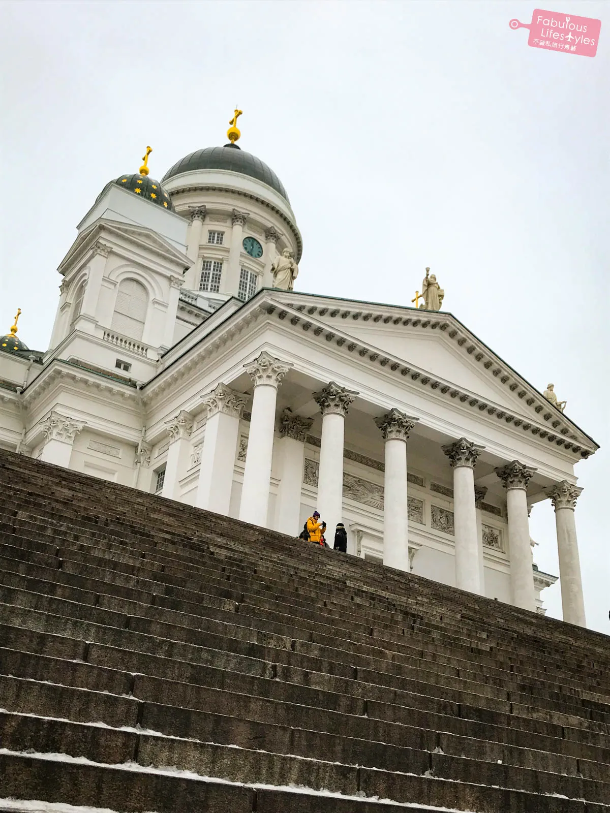 To get inside Helsinki Cathedral, you have to climb a very long set of stairs. (Cherry's personal tip: The stairs were a bit icy and super slippery on the day we visited! If you're visiting in winter, please be really careful walking up!)