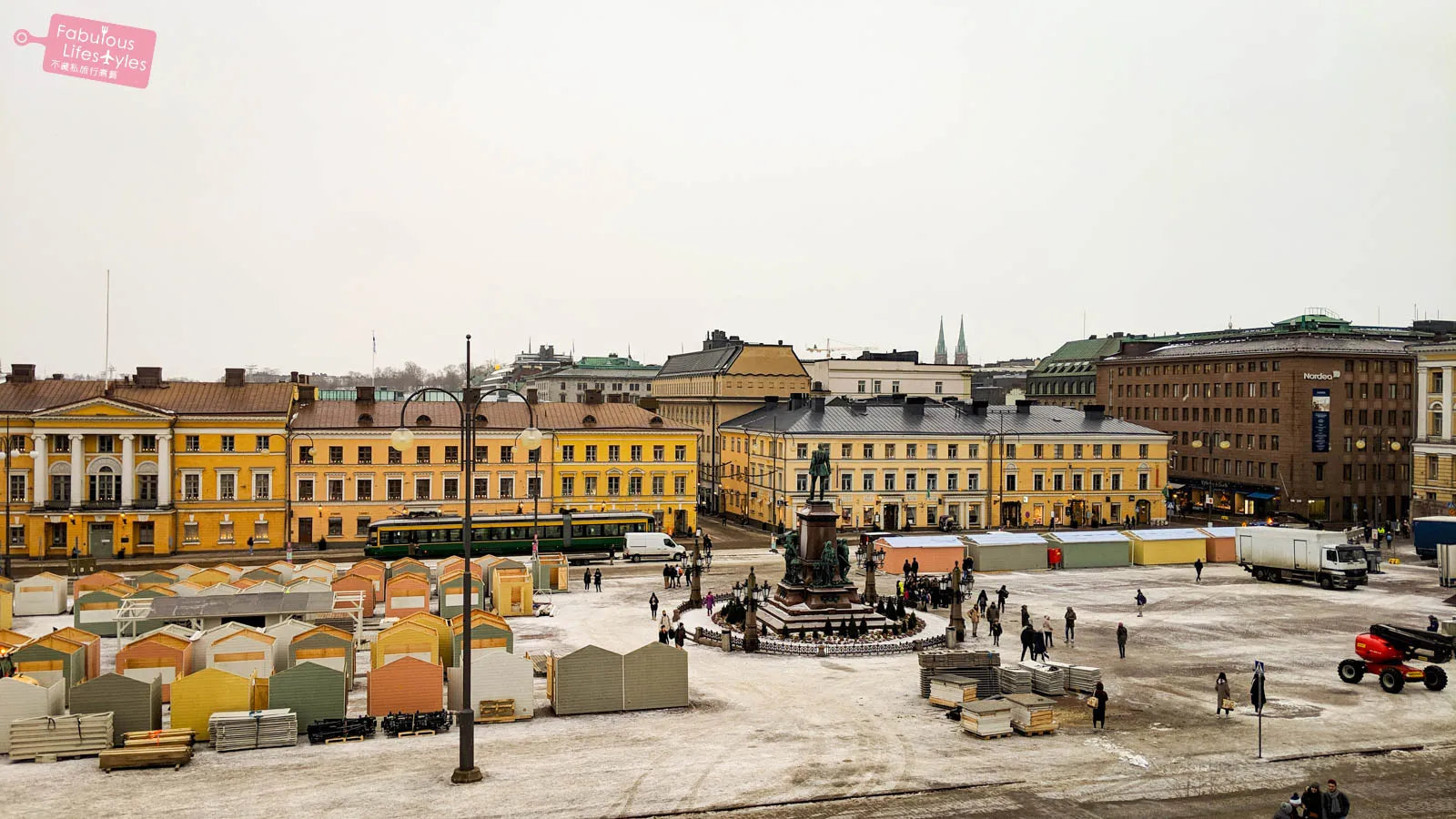 Those little wooden cabins down in the square are remnants of the Helsinki Christmas Market that had just wrapped up. The market usually runs from December 6th to December 22nd, but sadly, we just missed it…