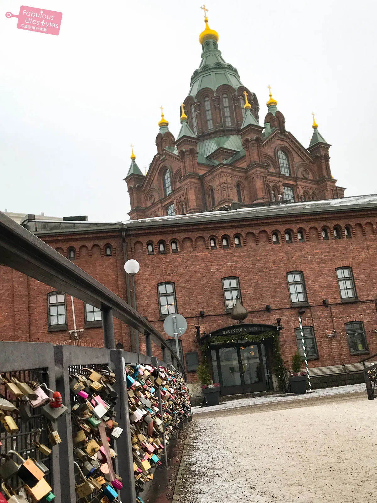 The bridge leading to Uspenski Cathedral is covered in padlocks 🔒. We later checked Google Maps and found out it's literally called "Love Bridge"—no wonder it's filled to the brim with love locks!