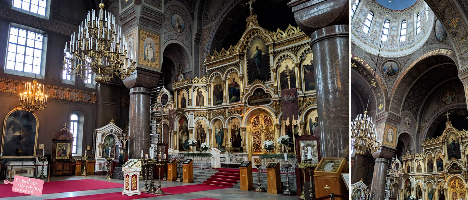Perched on the hillside of the Katajanokka peninsula, Uspenski Cathedral is also known as the "Red Church." Compared to the solemn elegance of Helsinki Cathedral, Uspenski's interior is significantly more lavish. The altar is set against an entire wall of tempera icons depicting Jesus and the Twelve Apostles. The inside exudes a strong Russian vibe (Finland was under Russian rule for over a century before gaining independence in 1917). The high vaulted ceiling above the altar is covered in exquisite paintings, paired with an absolutely massive, gleaming crystal chandelier in the center. It's like a Western version of ornate carved beams and painted rafters—elaborate and gorgeous, yet deeply solemn and unforgettable.