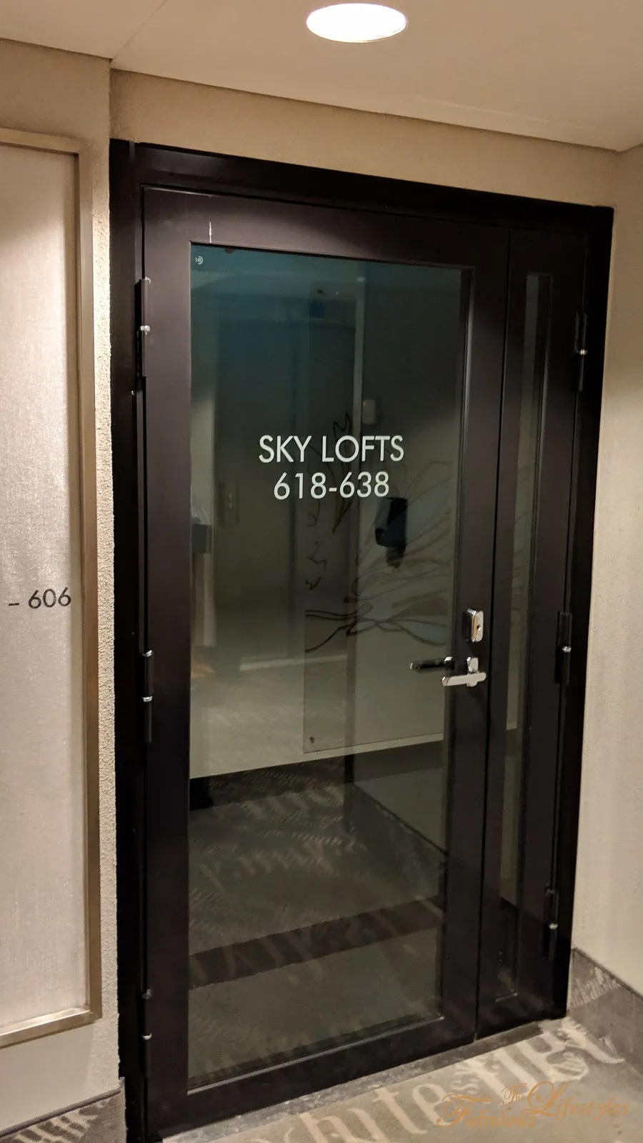 When we stayed in December 2018, Klaus K Hotel was still part of the Marriott International family as a Design Hotels property. Unfortunately, they officially left the Marriott network in 2019 and joined "Preferred Hotels" instead. Thanks to our Marriott status at the time, we were lucky enough to be upgraded to a Sky Loft room. All Sky Loft rooms are accessed through this door 👇🏻 — frosted glass that looks deceptively dark from the outside.