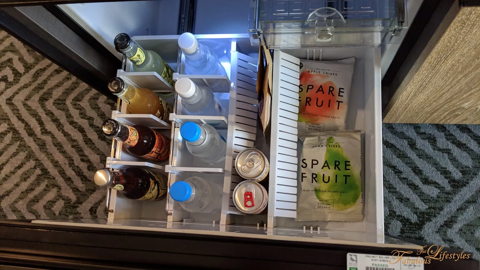 When it comes to this Hilton, what impressed us the most was the Mini Bar! When we checked in, the front desk staff told us that because of our elite status, everything in the Mini Bar was completely free to consume. Yes, you heard that right—all-you-can-eat-and-drink! And during housekeeping the next day, they restock everything fully so the cycle continues.