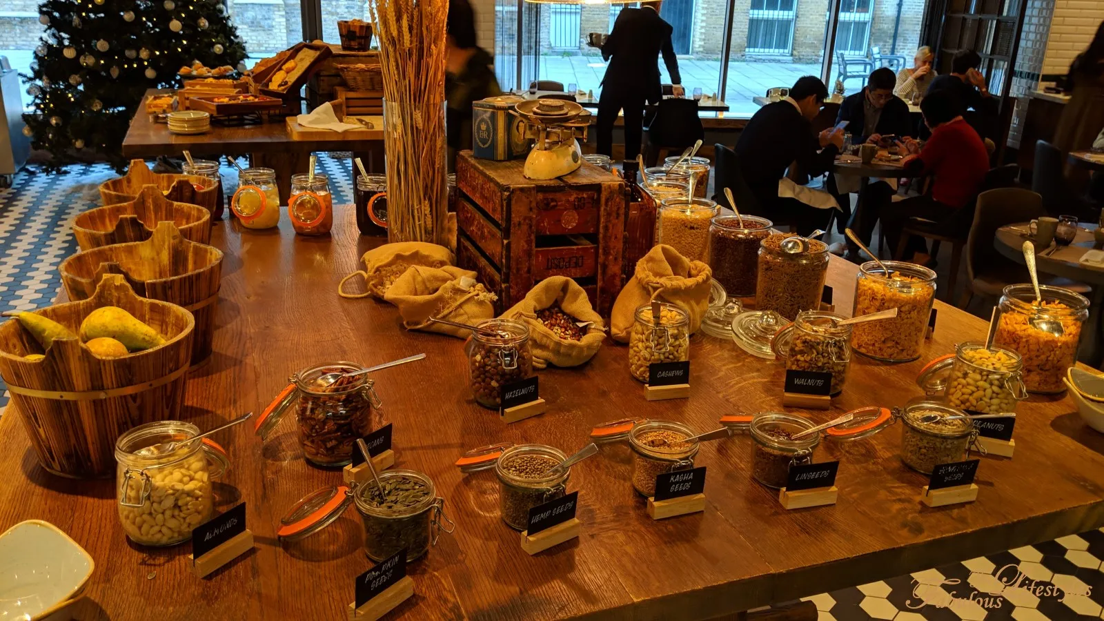 Breakfast is served at OXBO Bankside, the restaurant located right next to the ground floor lobby. Look closely at the snowy Christmas display under the sign—do you spot the little fox again?