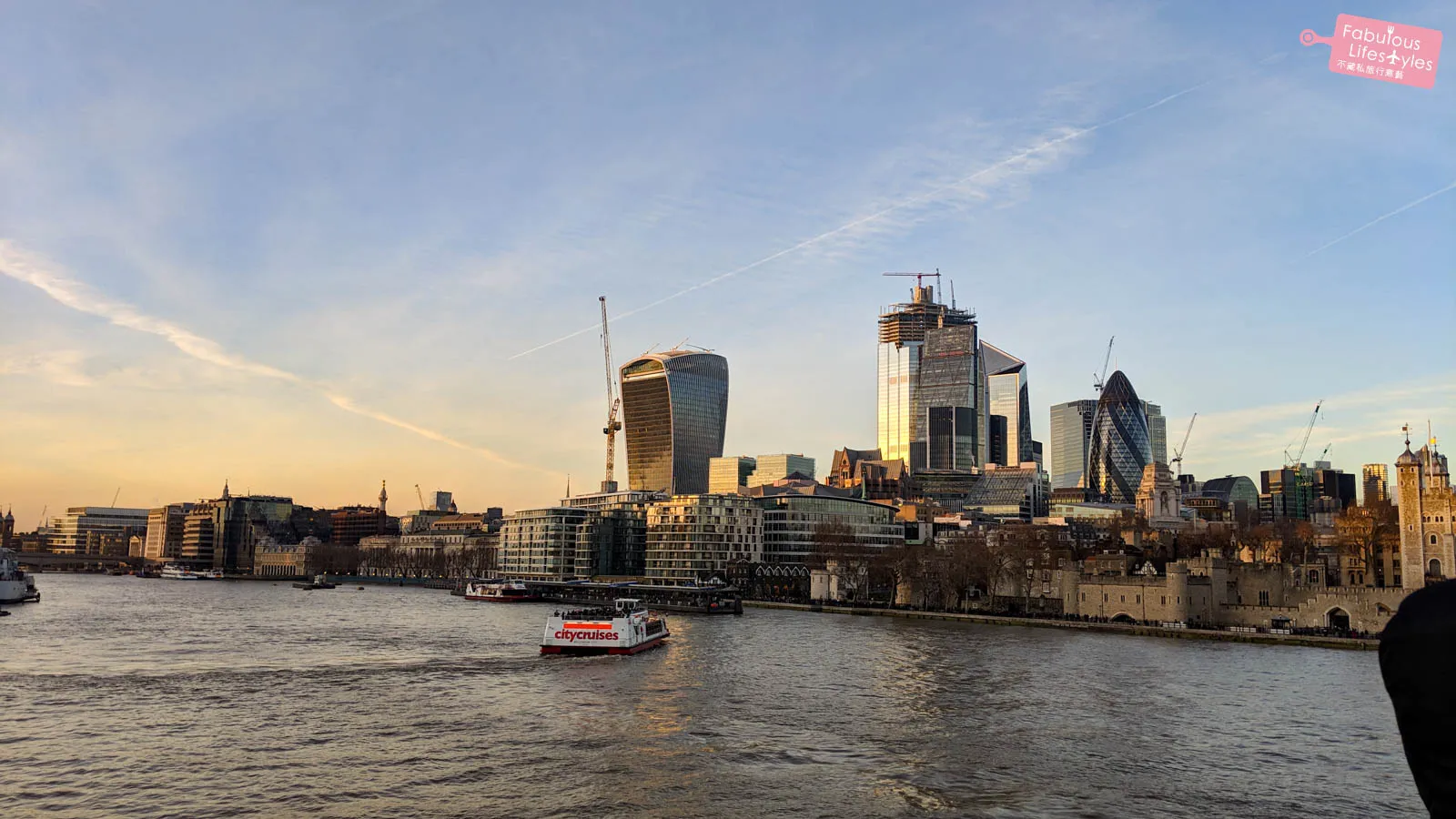 On the other side, you're treated to the North bank scenery, highlighted by the magnificent Tower of London.