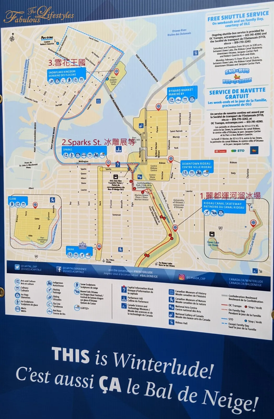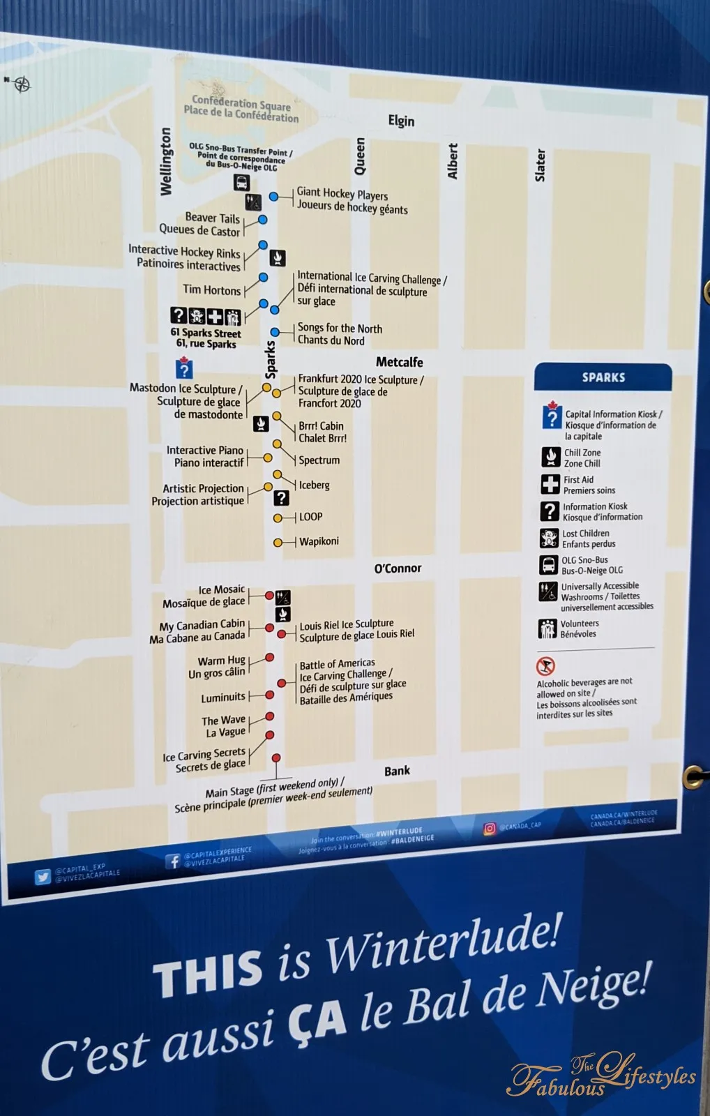 The map above shows the layout of the site, detailing all the stalls and exhibits along Sparks Street. The street was practically overflowing with activities—food, drinks, performances, and awe-inspiring ice sculptures. It is definitely worth a visit!