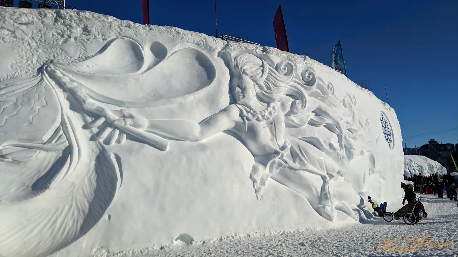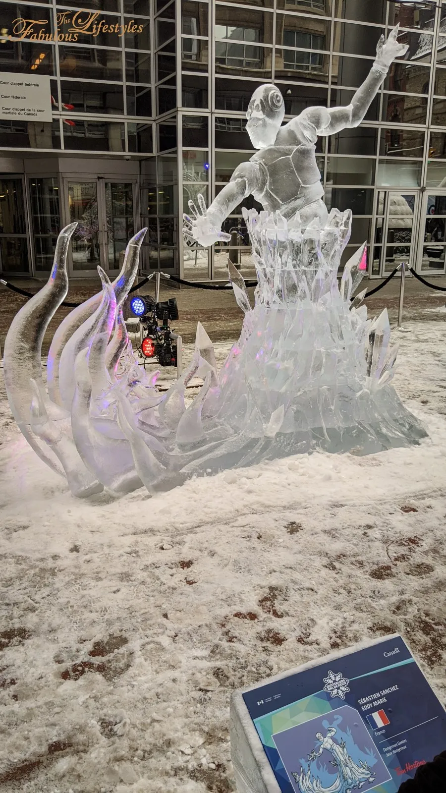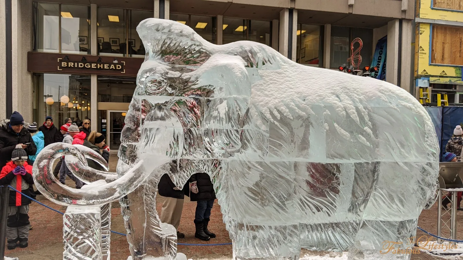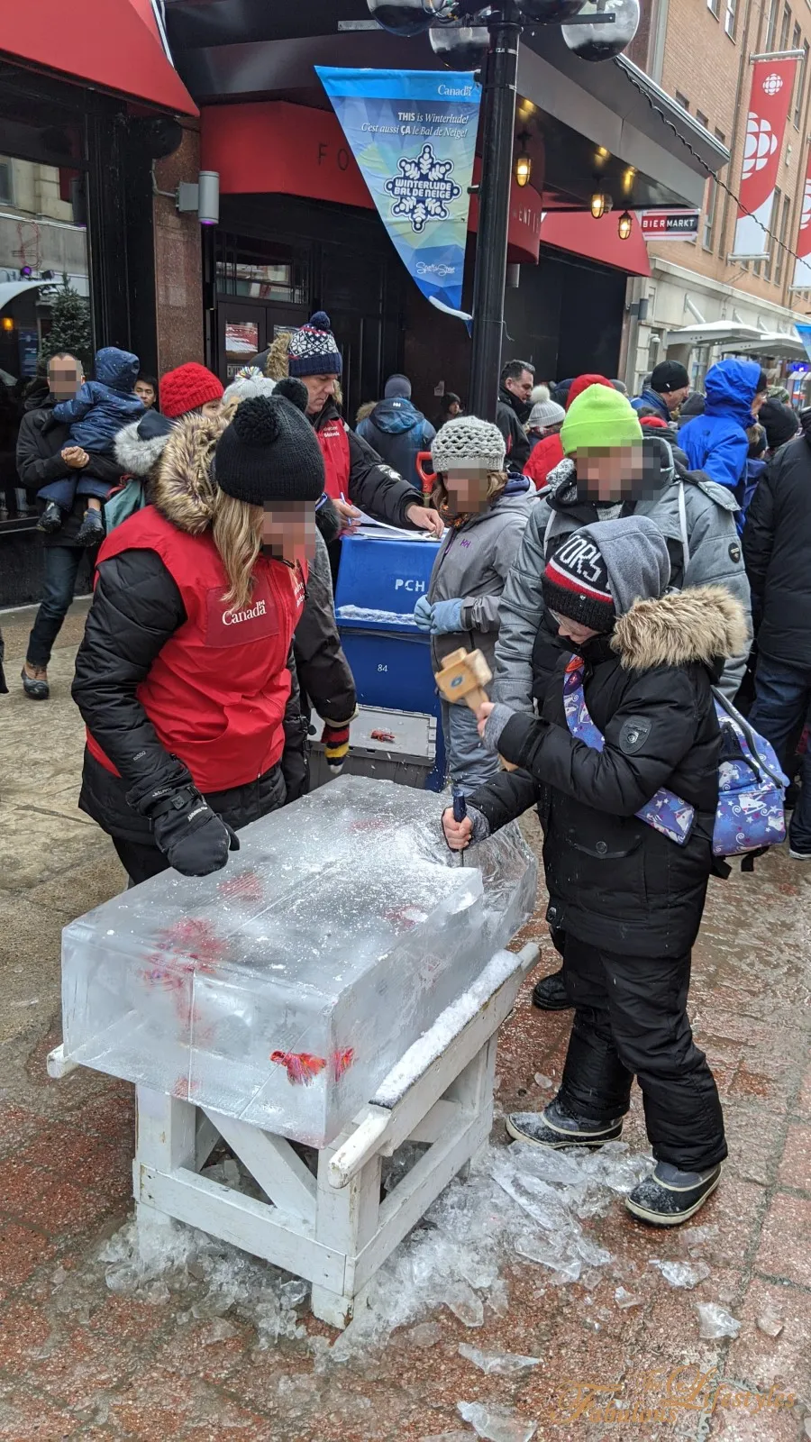 This year in 2020, the ice carving competition sponsored by Tim Hortons was held in the Sparks Street pedestrian zone in downtown Ottawa.