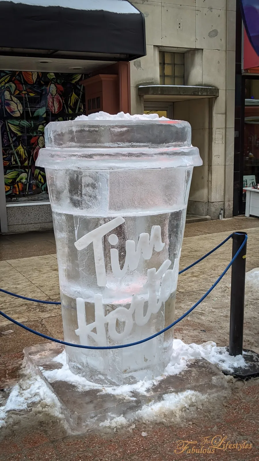 Naturally, the main sponsor Tim Hortons couldn't be left out! Their giant takeout cup ice sculpture, hundreds of times bigger than the real thing, was surprisingly adorable!