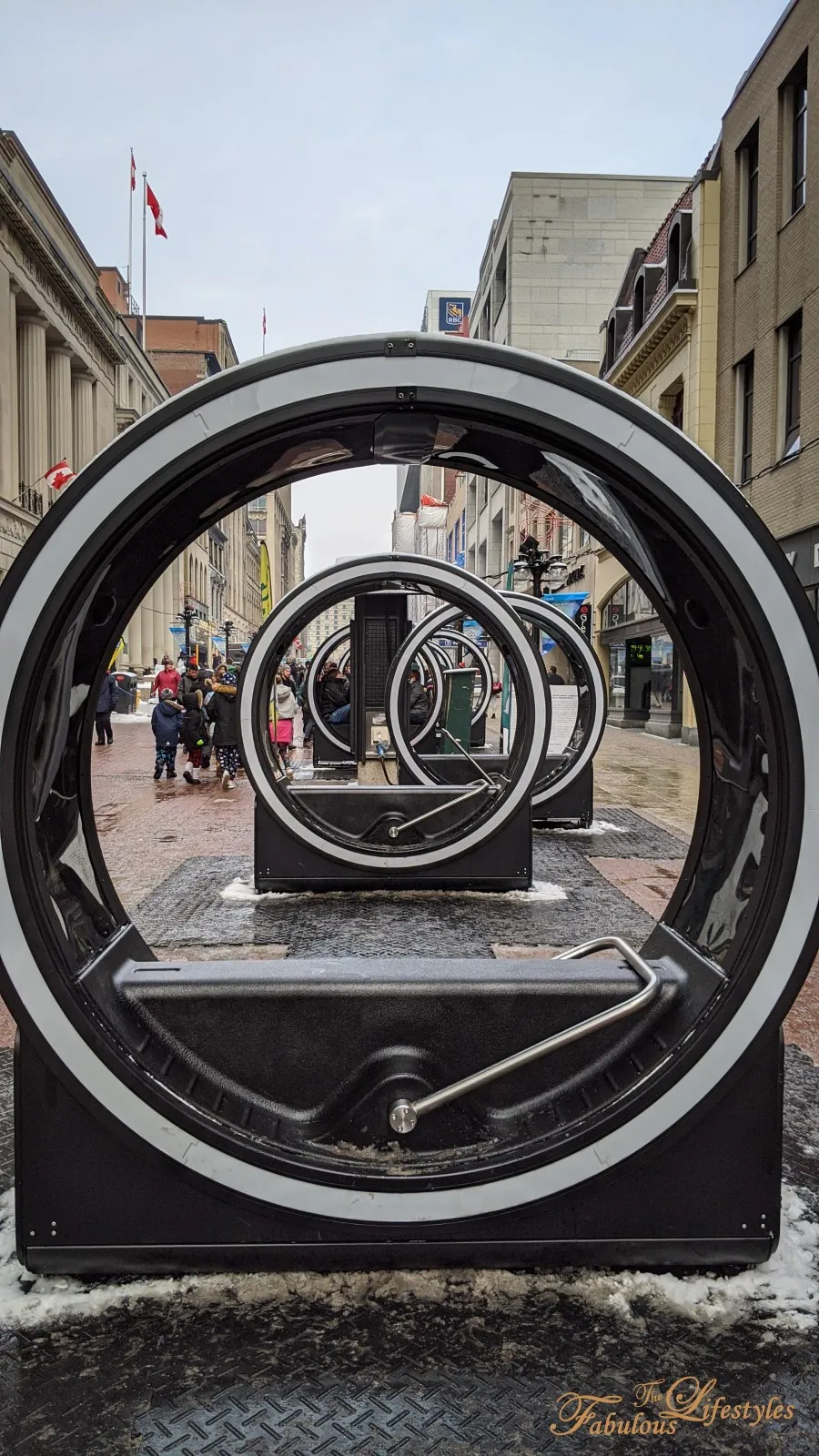 This particular art installation was really unique. Every time you walked through one of the U-shaped arches, it would emit a different sound. The installation was designed to represent a unique Canadian instrument called an "iceberg."