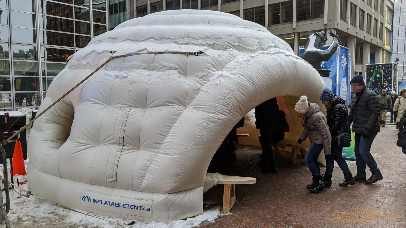 The organizers thoughtfully set up an inflatable "igloo" where people could go inside to warm up~~~