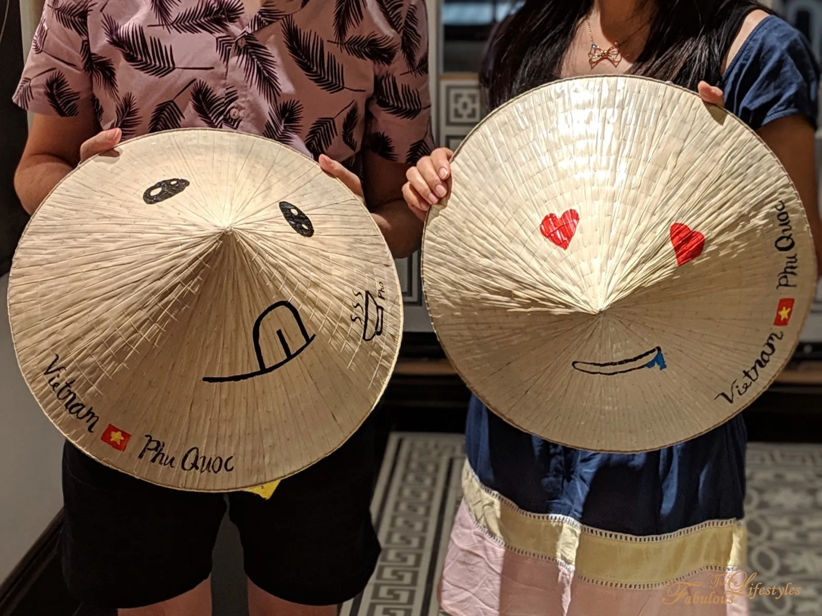 Just like the conical hat painting, the hotel staff provides paints, brushes, and plenty of design templates to choose from! But again, you are totally free to sketch out your own designs. The paint they use is actually amazing! They told us that once it air-dries for a few days, it's completely washable. I was honestly terrified that the black paint we used would bleed and ruin our hard work, so I waited a long time before finally gathering the courage to wash them. But as it turns out, even throwing them in the washing machine didn't cause any fading or bleeding!