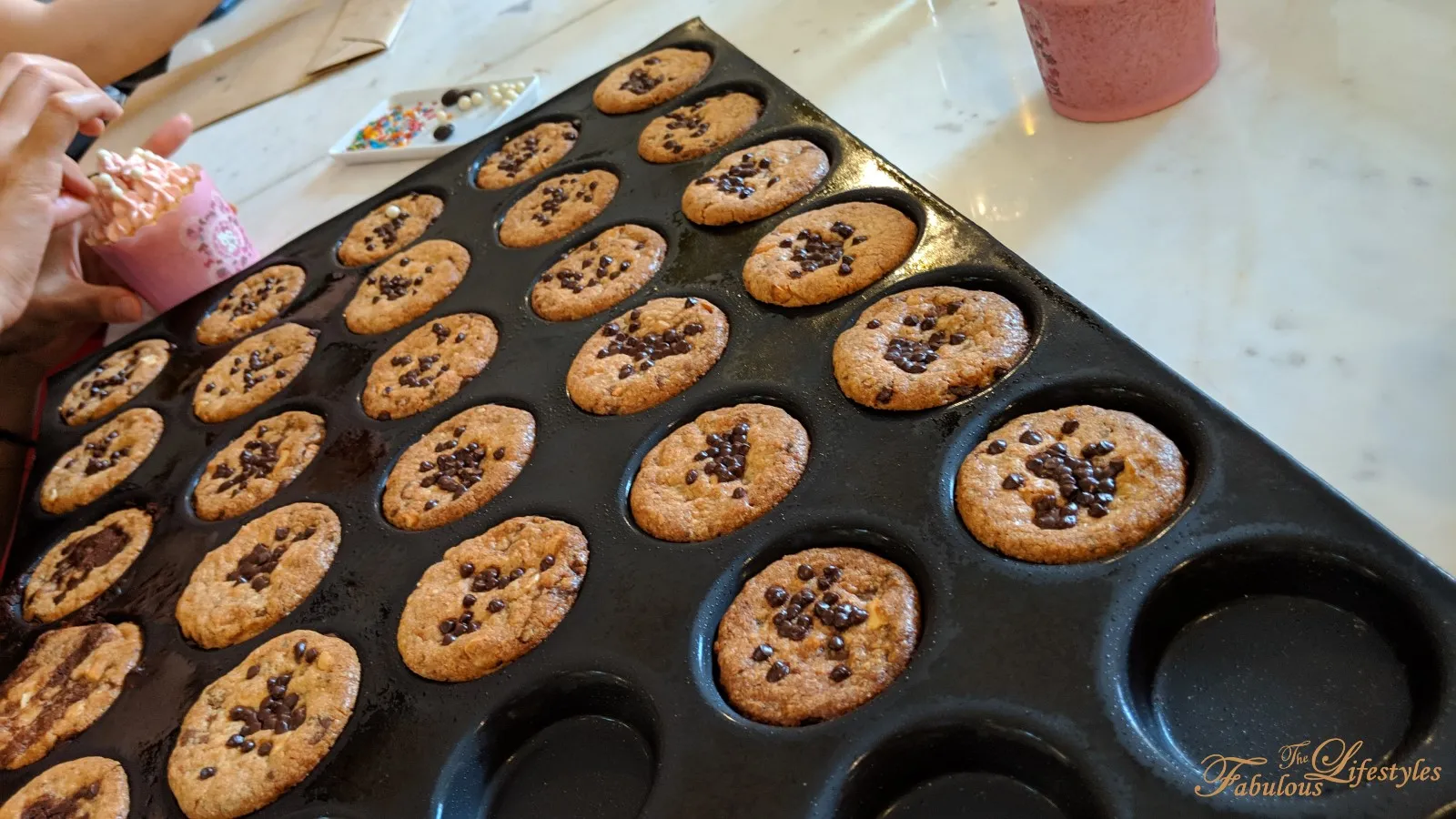 We were each handed a portion of the dough to shape into our own cookies and sprinkle with chocolate chips.