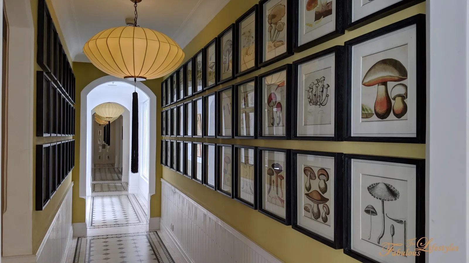 The hallway also features an entire row of these floating chairs.