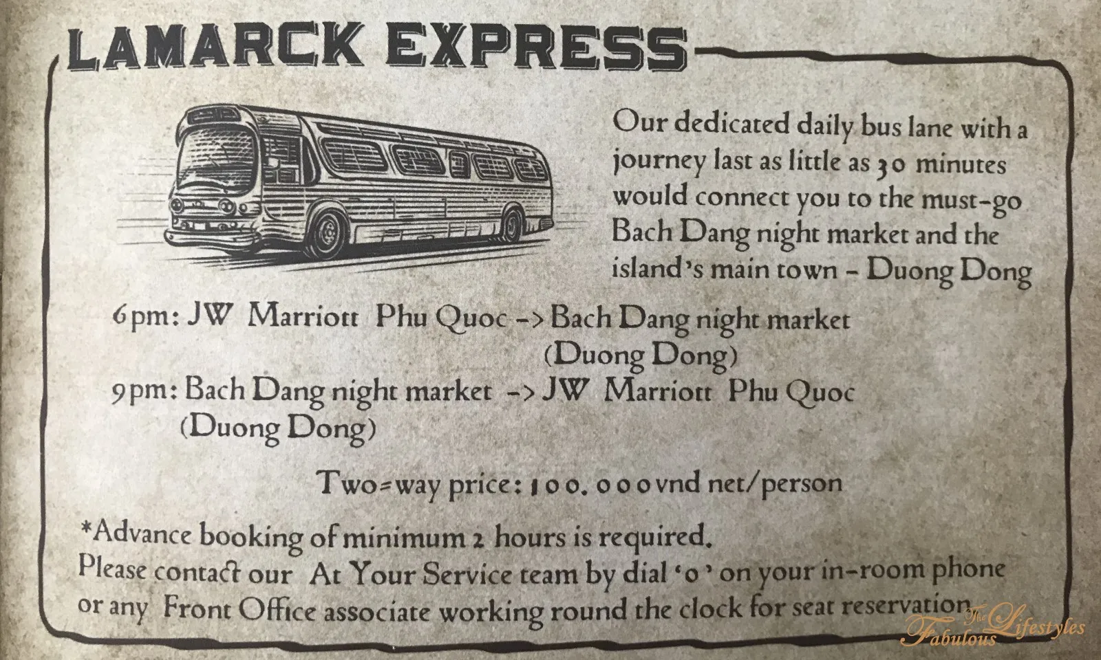 If you still want to experience the "real" Phu Quoc Night Market, the resort offers a shuttle service called the Lamarck Express, priced at 100,000 VND per person round-trip. The shuttle departs every evening at 6 PM to take you into town, and at 9 PM the driver will wait at the original drop-off point to bring everyone back. (Always confirm the exact times and pricing with the front desk at check-in!)