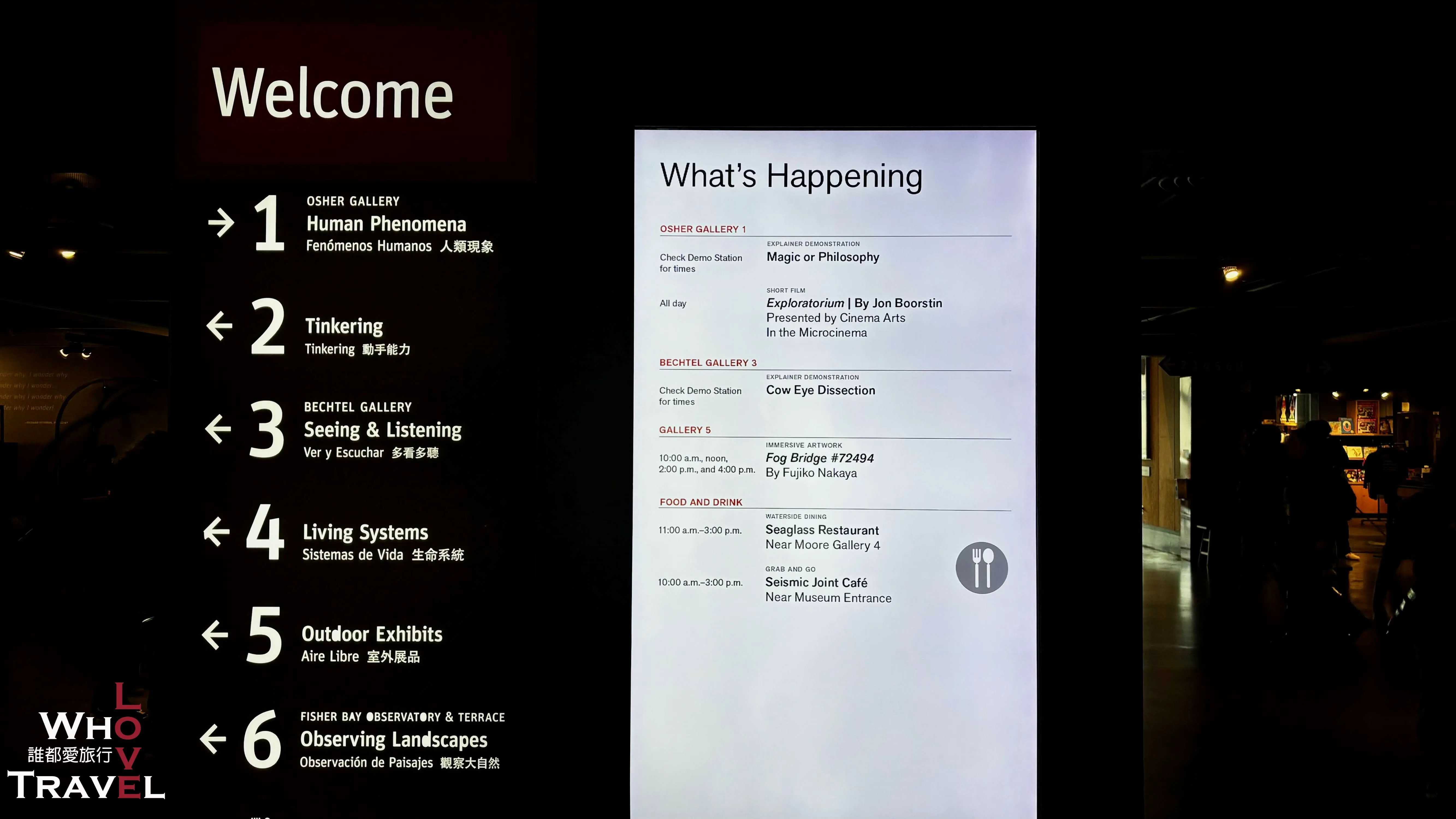 The museum is divided into six main galleries: Human Phenomena, Tinkering, Seeing & Listening, Living Systems, Outdoor Exhibits, and Observing Landscapes. Right as you walk in, you’ll see a "What's Happening" board. We recommend checking it first to see if there are any special activities or demonstrations you'd like to join that day!