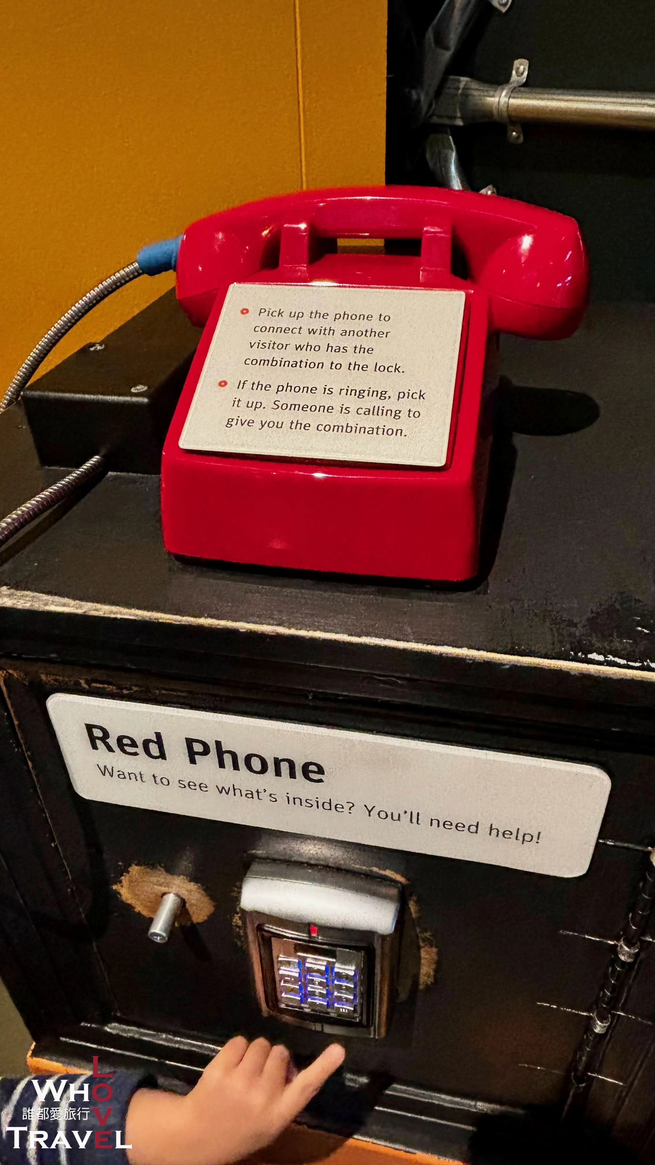 Some exhibits require teamwork and cooperation with others. This telephone setup is one of them—you have to ask the person on the other end of the line to give you the secret code so you can crack open the safe below.