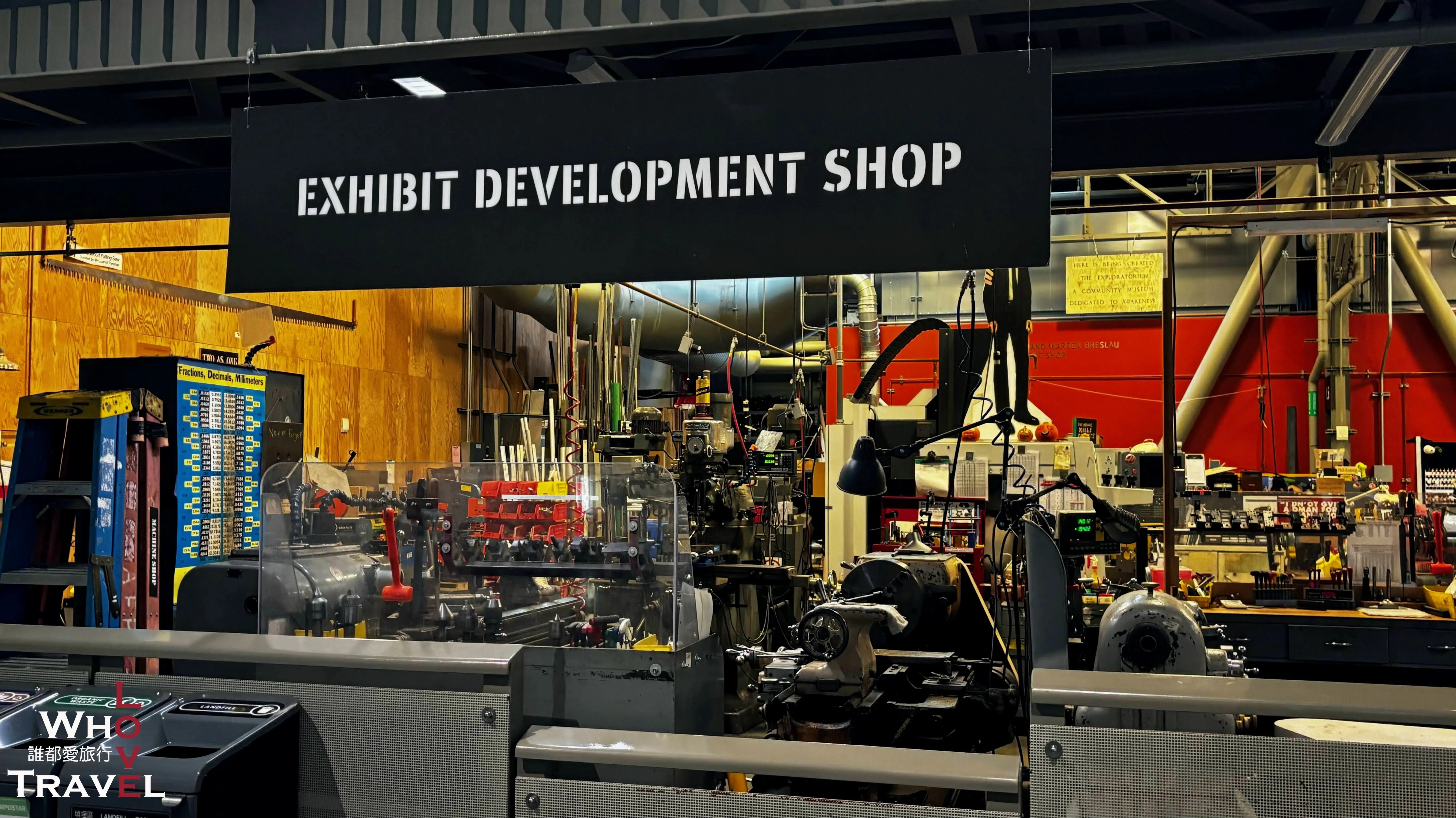 Directly opposite the clock is the incredibly impressive "Exhibit Development Workshop"! You can actually look inside and see all kinds of machinery and tools. We truly admire the developers working here—how do they even dream up and build so many magical exhibits?!