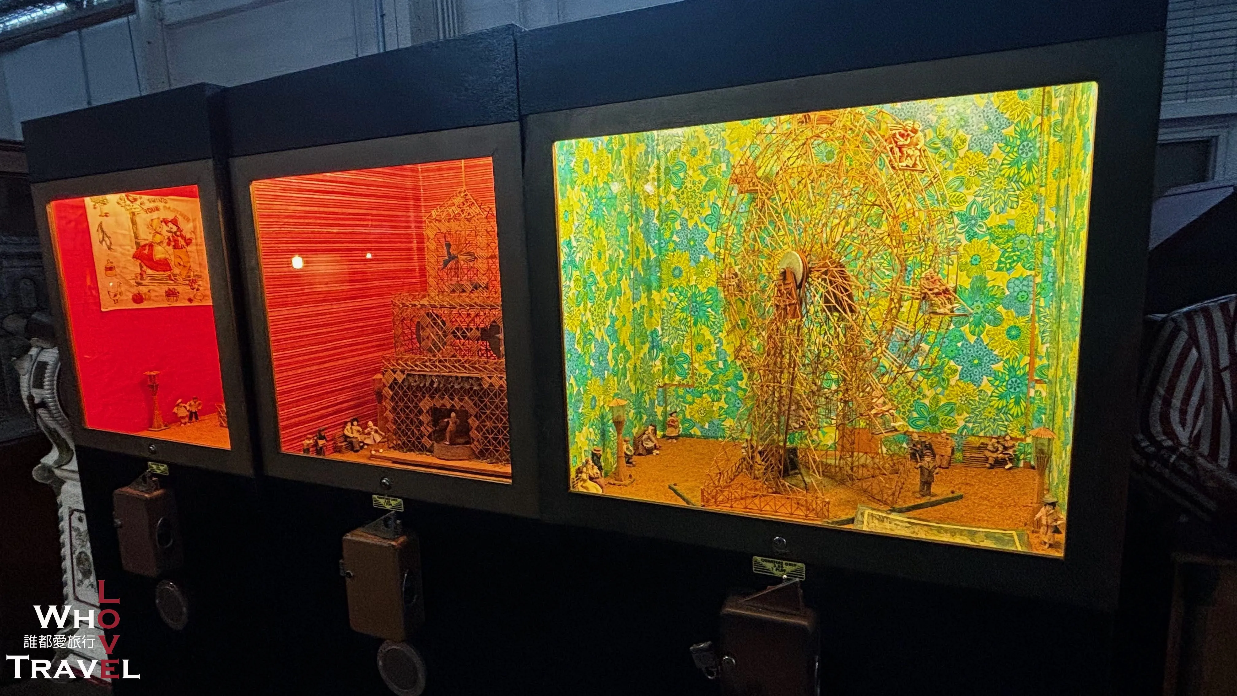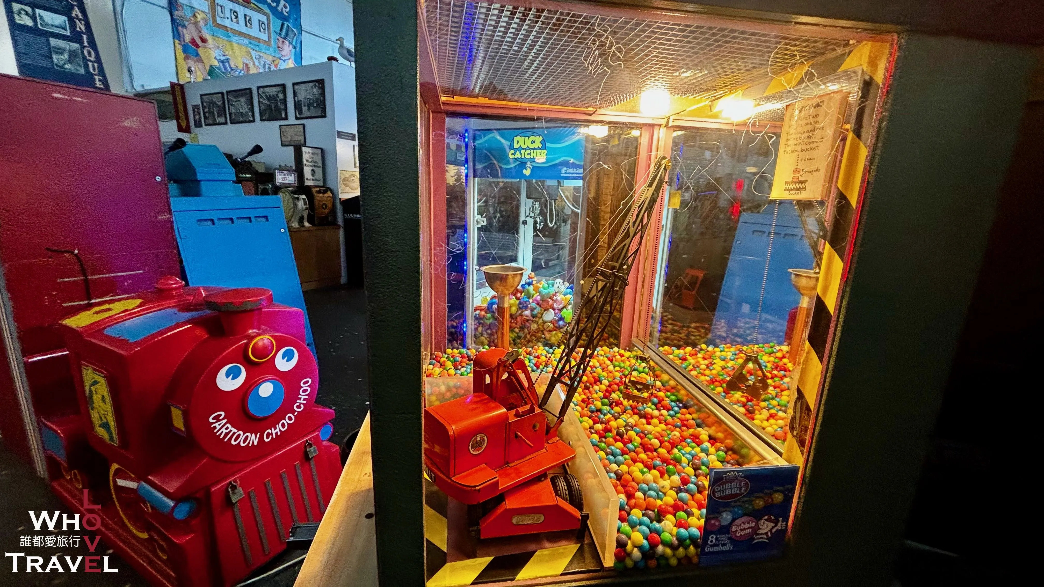 There are also quite a few custom, non-mass-produced machines inside. For example, this carnival diorama machine was entirely handcrafted by a former carnival performer who had to retire due to an injury!