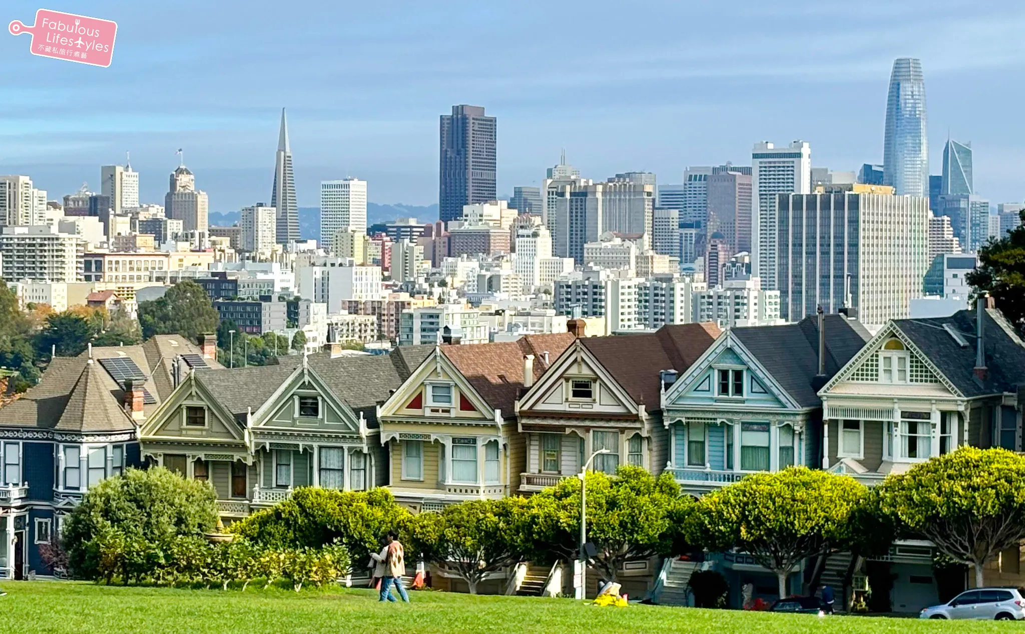 The Painted Ladies sit right next to Alamo Square Park. From the square, not only do you get a front-row seat to these six colorful houses, but you can also gaze out at the distant San Francisco skyline. It truly offers a perfect vantage point to overlook the city! To be honest, we were initially quite confused as to why photos of these six houses were plastered across every airport advertisement the moment we landed. Before actually visiting, we were super skeptical—what's so special about six ordinary houses anyway? We even kept joking that if the homeowners traveled abroad and came back through the airport, they'd see their own houses welcoming them home everywhere. Wonder what kind of magical feeling that would be! XD But wow, seeing it with our own eyes far exceeded anything the photos could capture. The architecture of the Painted Ladies symbolizes San Francisco's historic charm, while the backdrop features the city's modern high-rises. This seamless blend of history and modernity creates an incredibly unique and special view.
