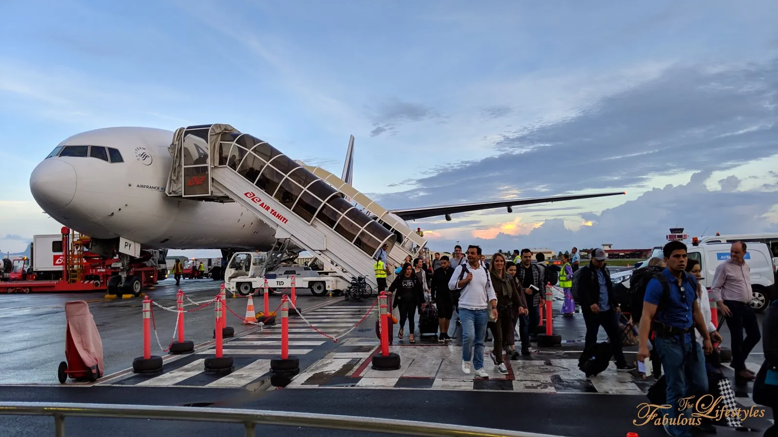 Let's first introduce Faa'a International Airport (PPT) in Papeete, Tahiti. Unlike most international airports where you disembark through a jet bridge, everyone arriving on international flights here walks directly down the stairs onto the tarmac. It’s just a short walk of a few hundred meters to the terminal building!